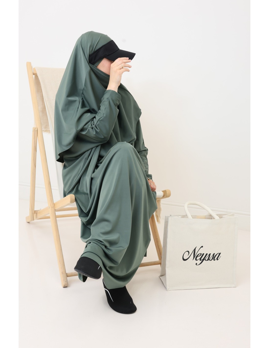 Profitez de vos activités aquatiques en toute confiance avec le Jilbab de Bain avec Khimar de Neyssa. Alliant style, confort et modestie, il est l'option idéale pour les femmes musulmanes qui souhaitent concilier leur pratique sportive avec leurs valeurs. Faites une déclaration de mode en choisissant Neyssa, la marque qui célèbre la beauté de la pudeur.