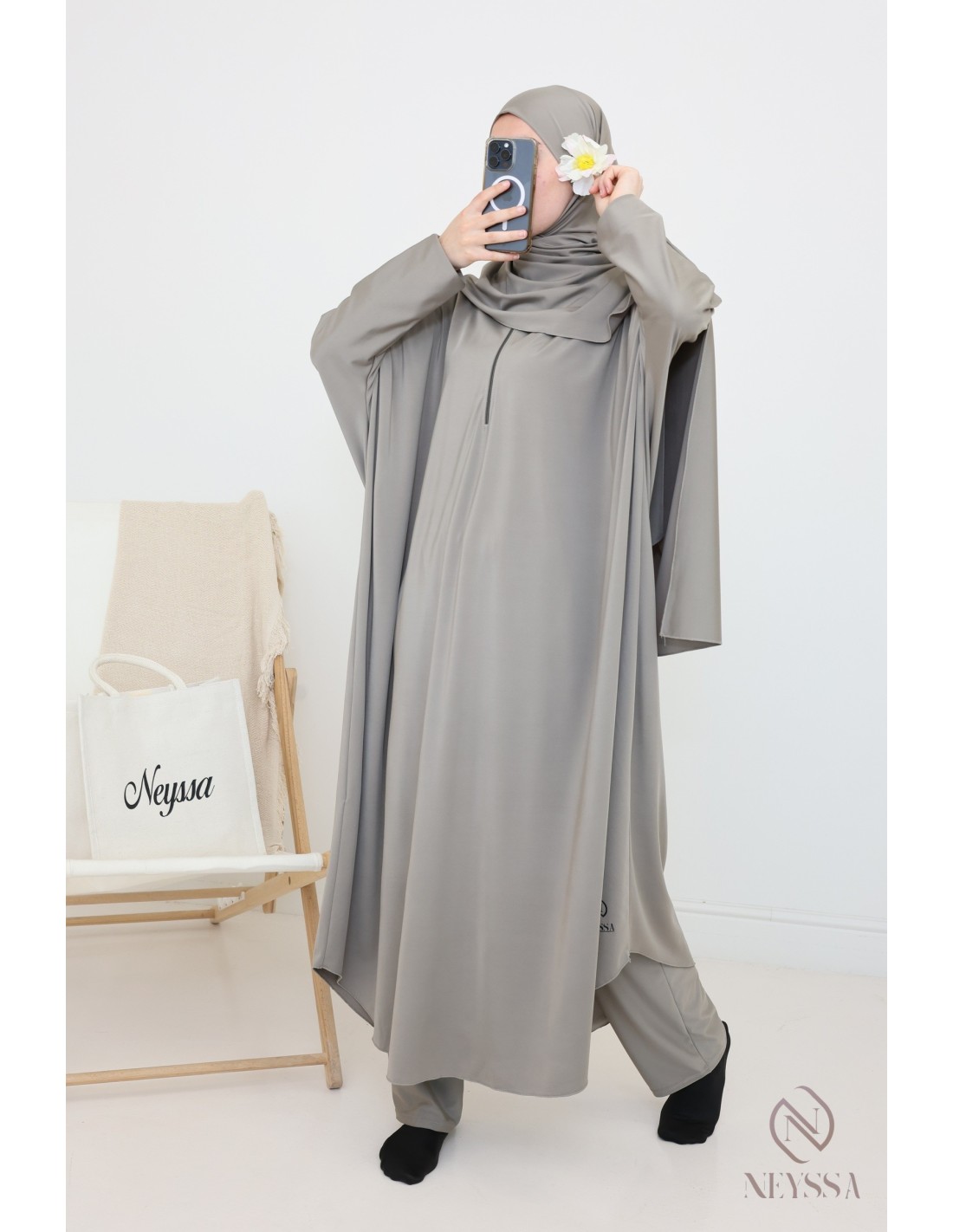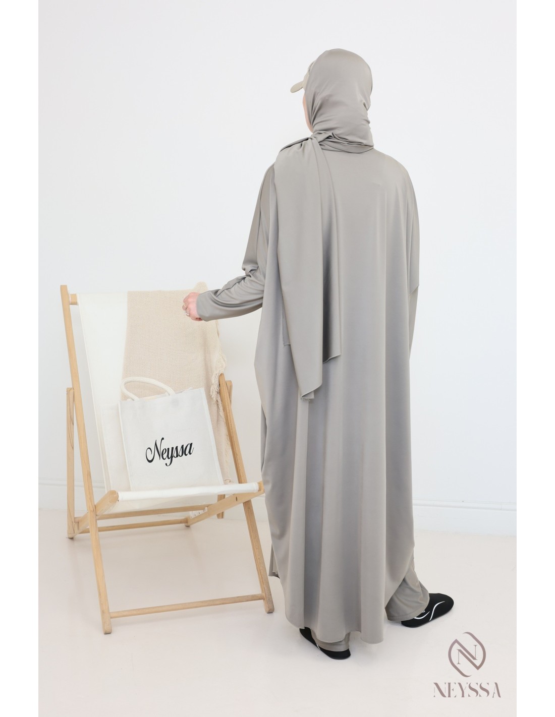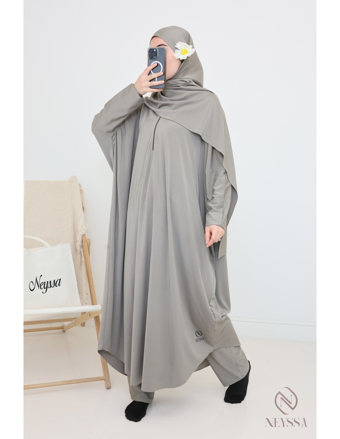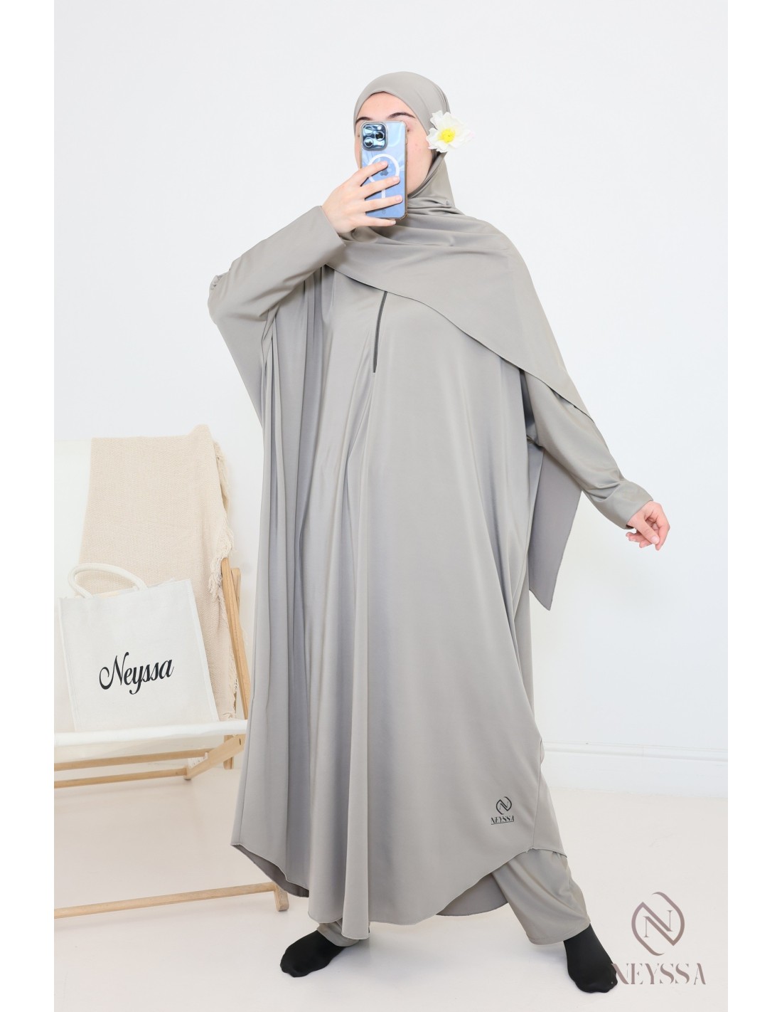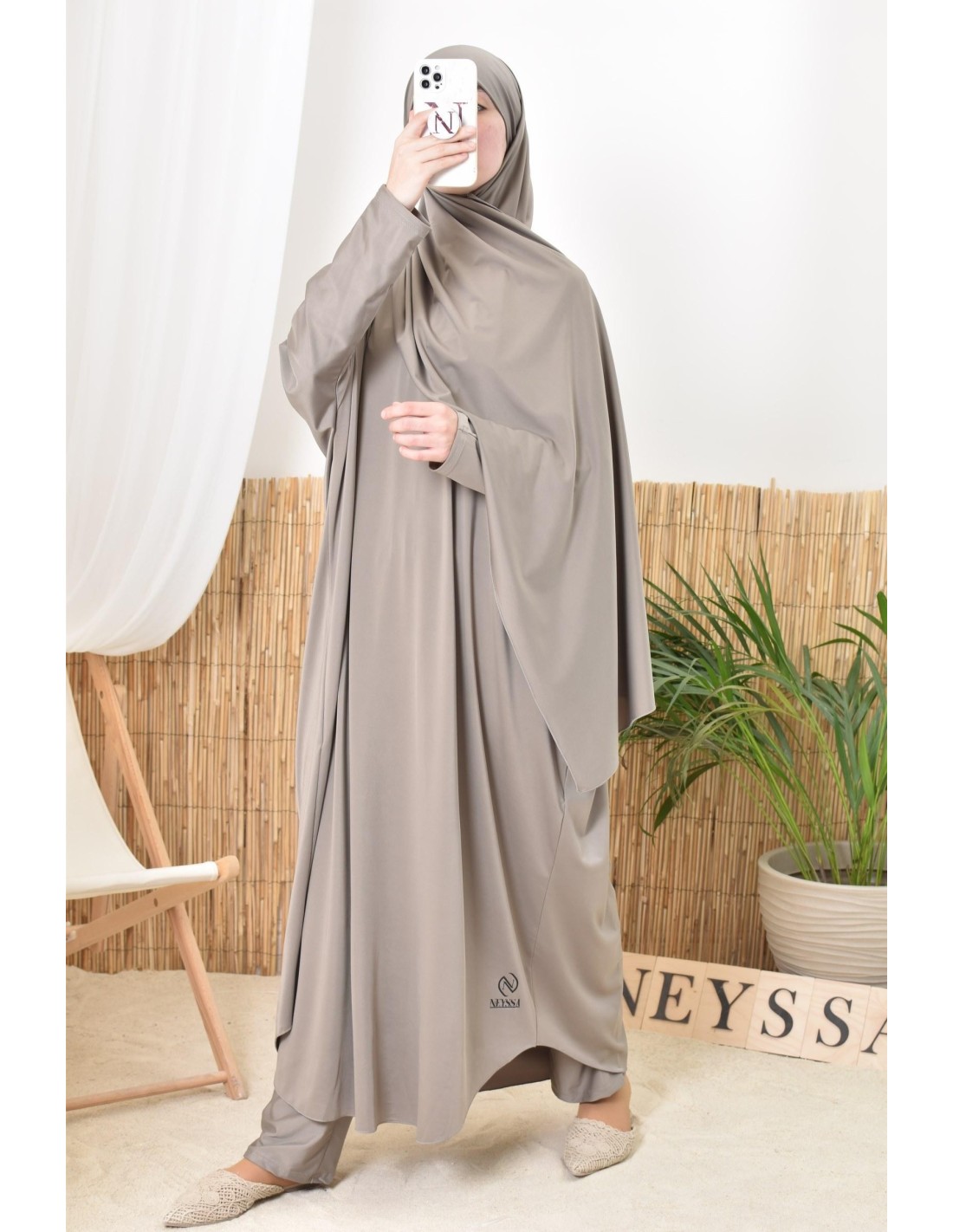 - Confection Neyssa : Ce jilbab de bain a été confectionné dans nos ateliers avec un tissu de qualité
