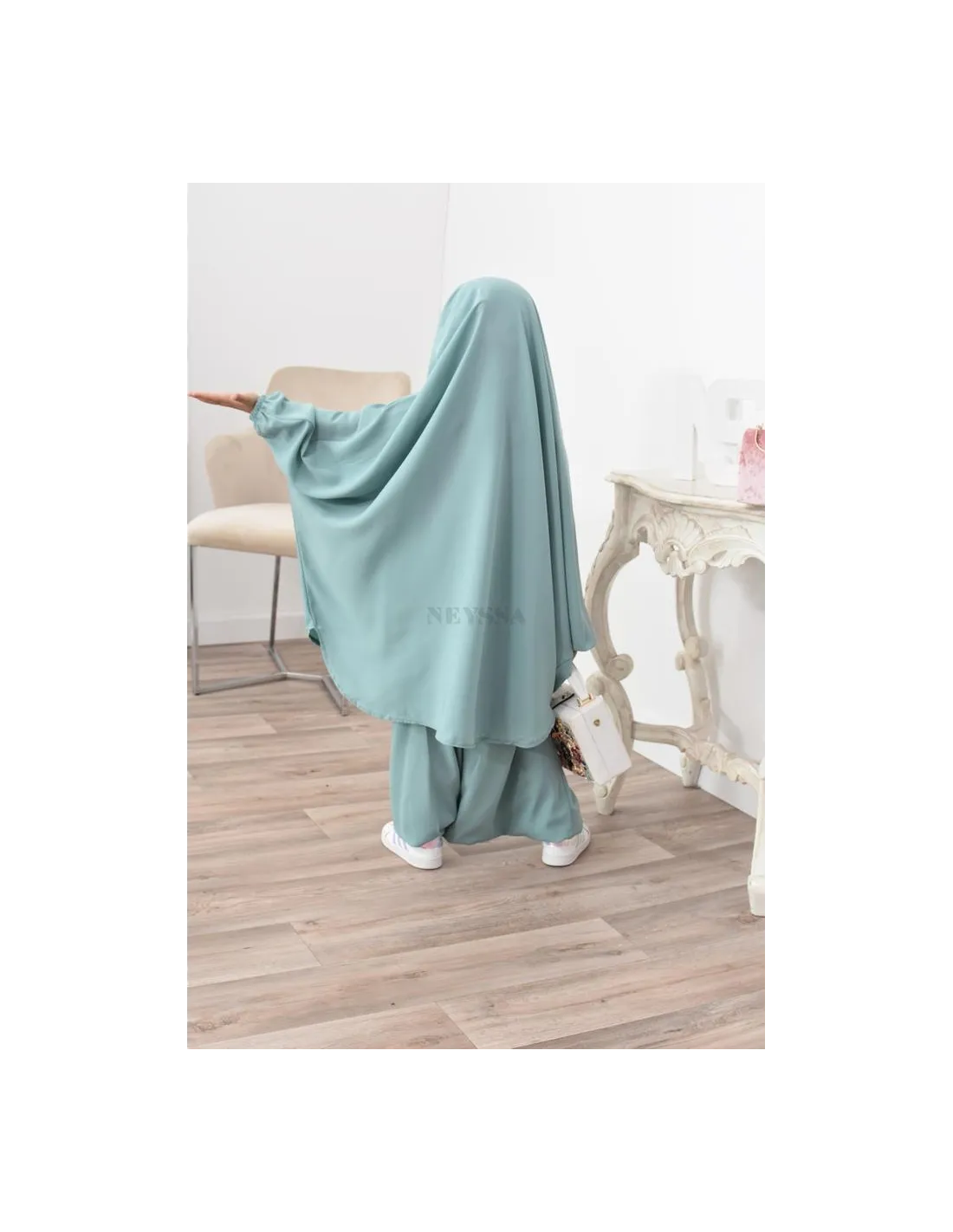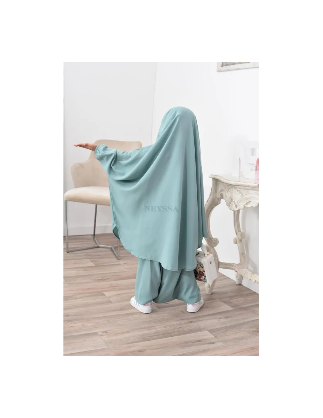 Jilbab fillette deux pièces Sarouel: jilbab pour nos petites princesses pratique pour prier ou aller à la mosquée.