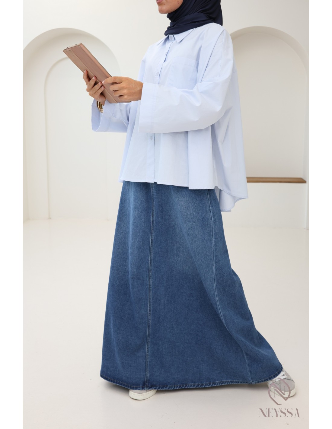 Optez pour cette jupe longue en jean hyper tendance pour cet été dans notre catégorie vêtement pour femme hijabi