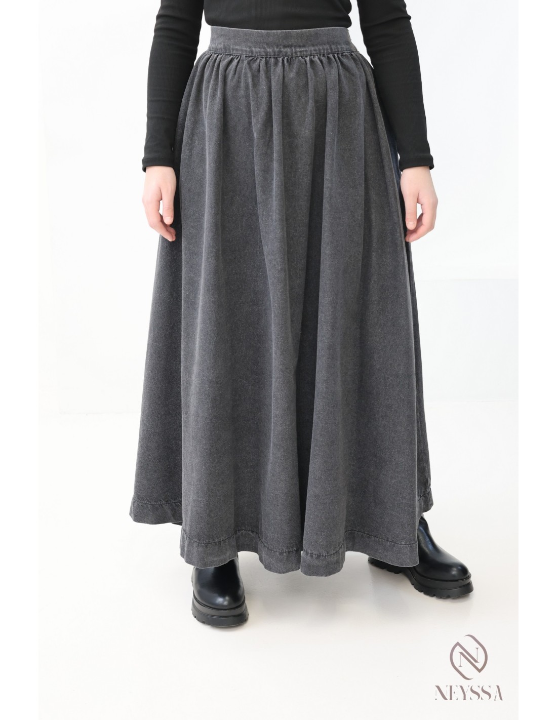 Jupe longue ample gris/noir sans fentes femme 100% coton