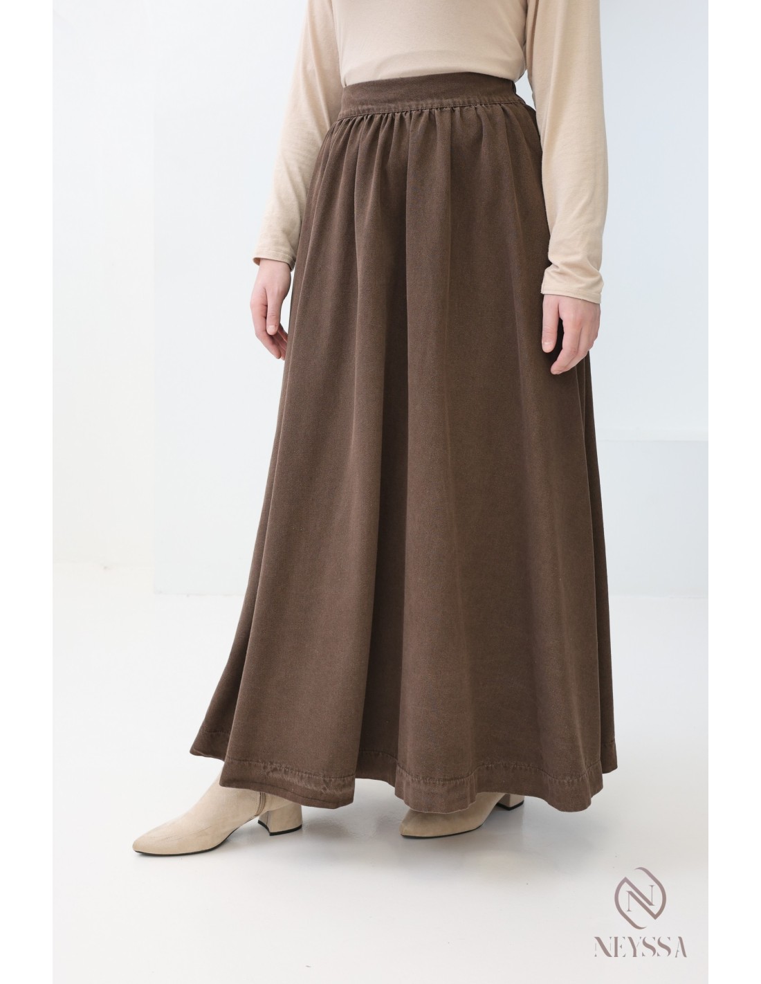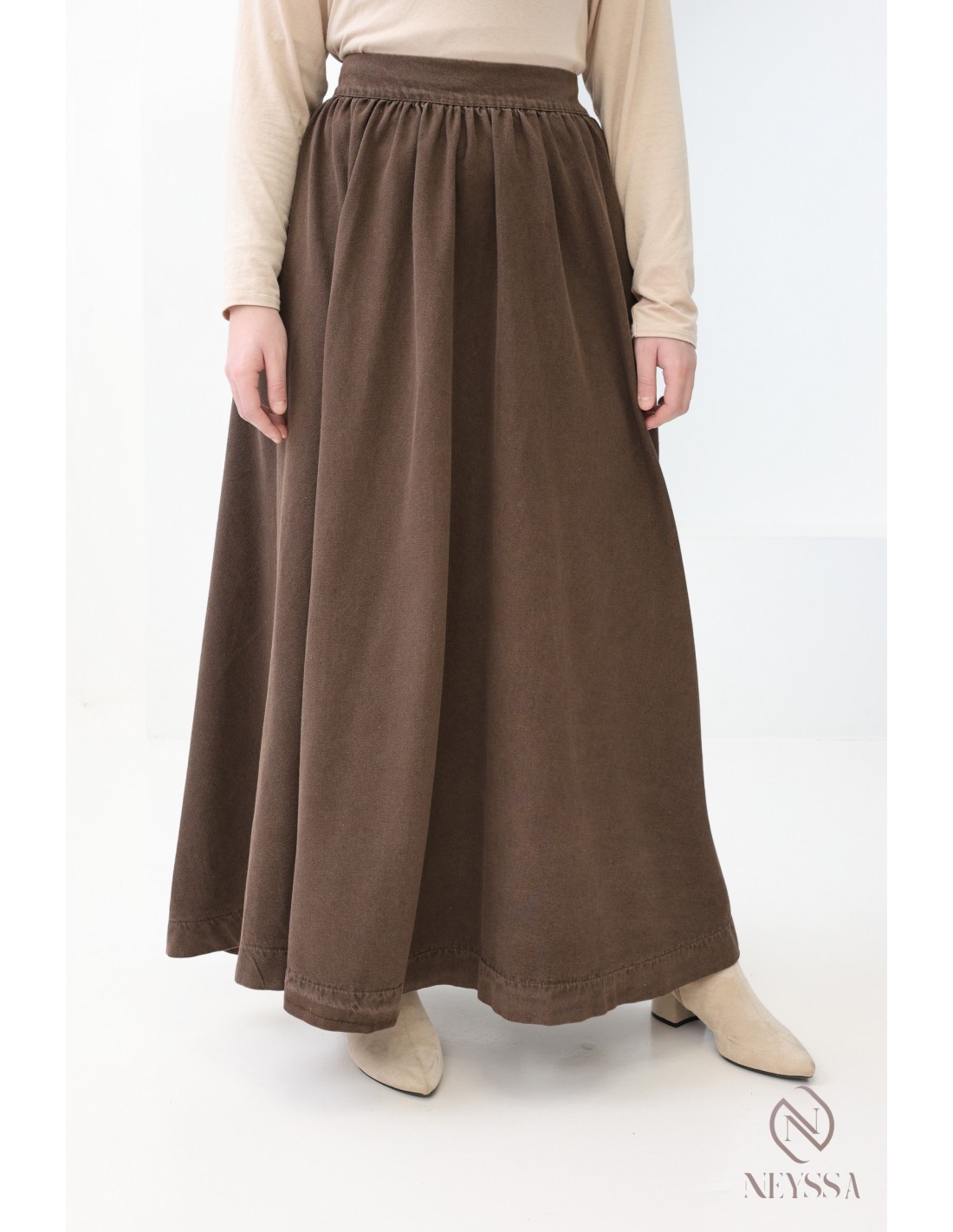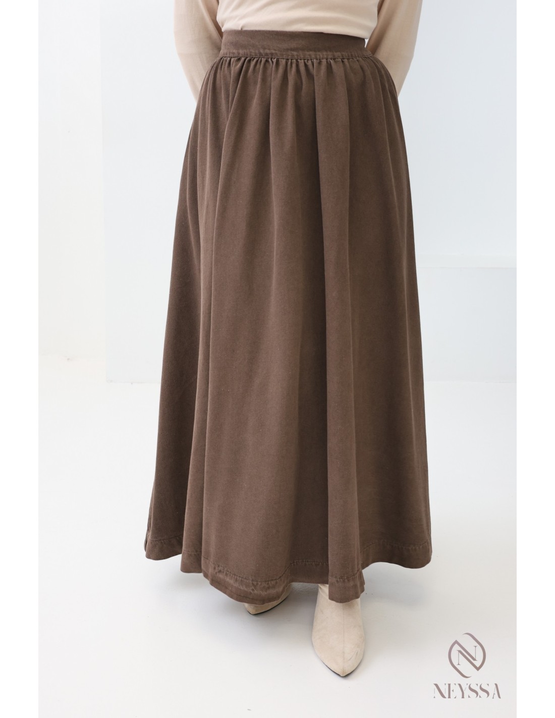 Jupe en jean longue marron sans fentes 100% coton pour femme