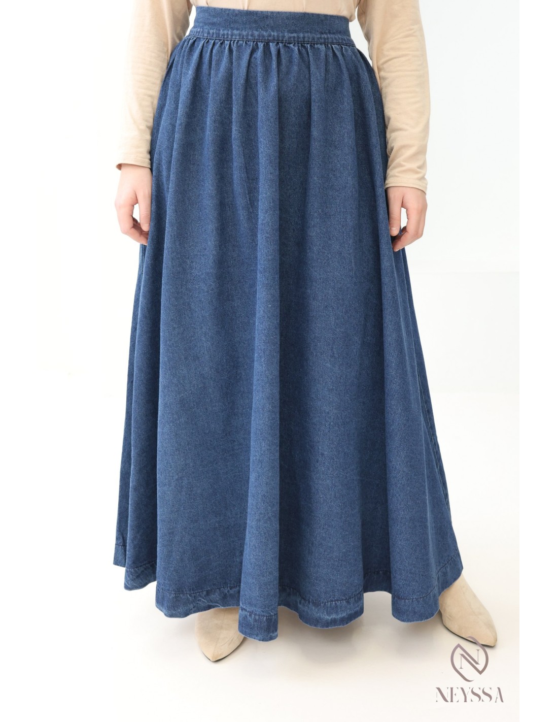 Jupe longue en jean brut foncé 100% coton pour femmes pudique