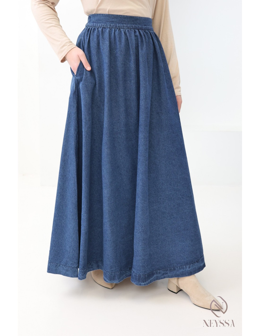 • Confort absolu : Fabriquée à partir de denim souple et confortable, une jupe en jean longue permet une liberté de mouvement totale. Elle est idéale pour les journées chargées où le confort est essentiel.
