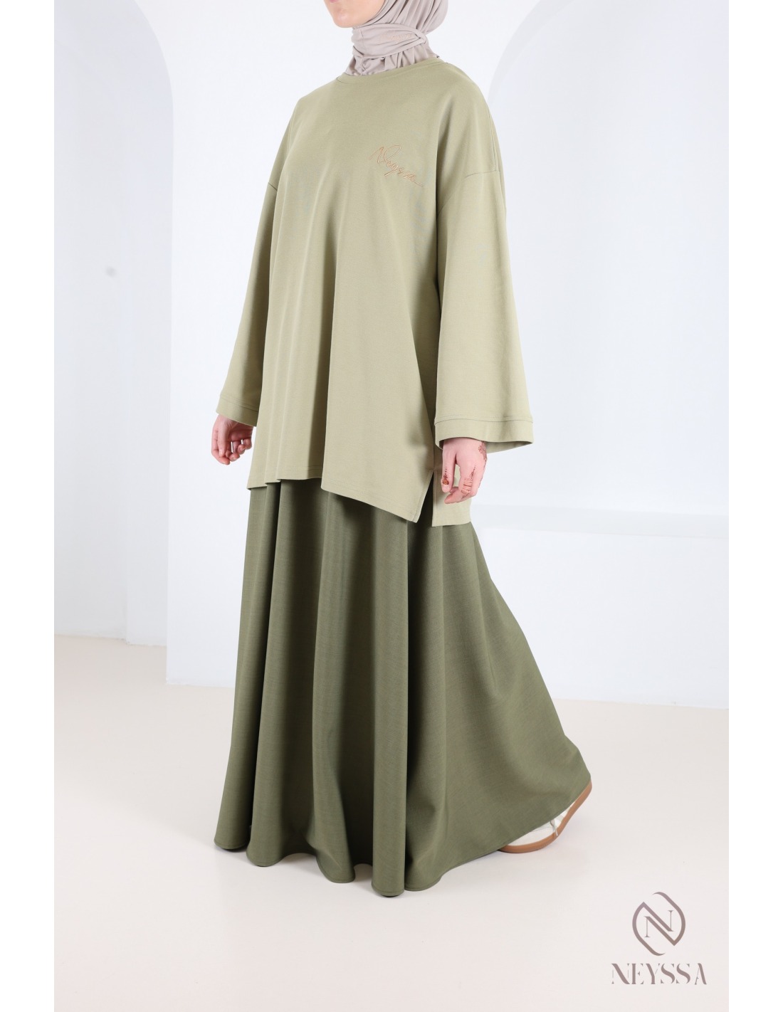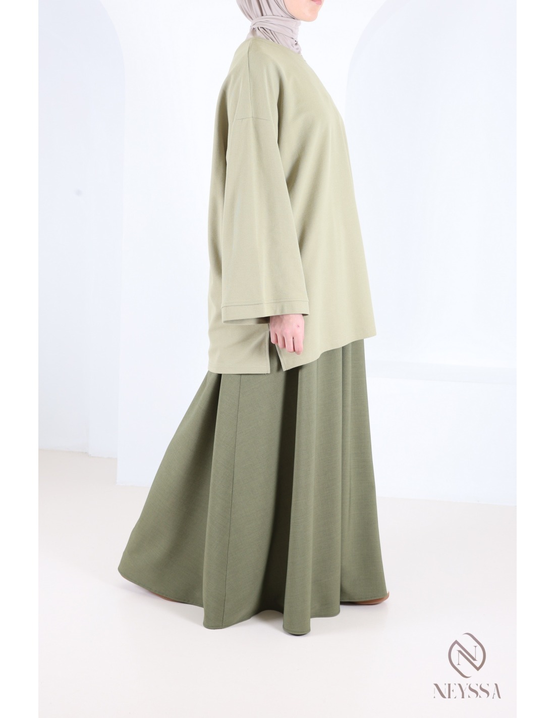 Cette jupe évasée femme hijabi est également disponible avec son haut dans la catégorie haut et jupe sous le nom de TAMARA.