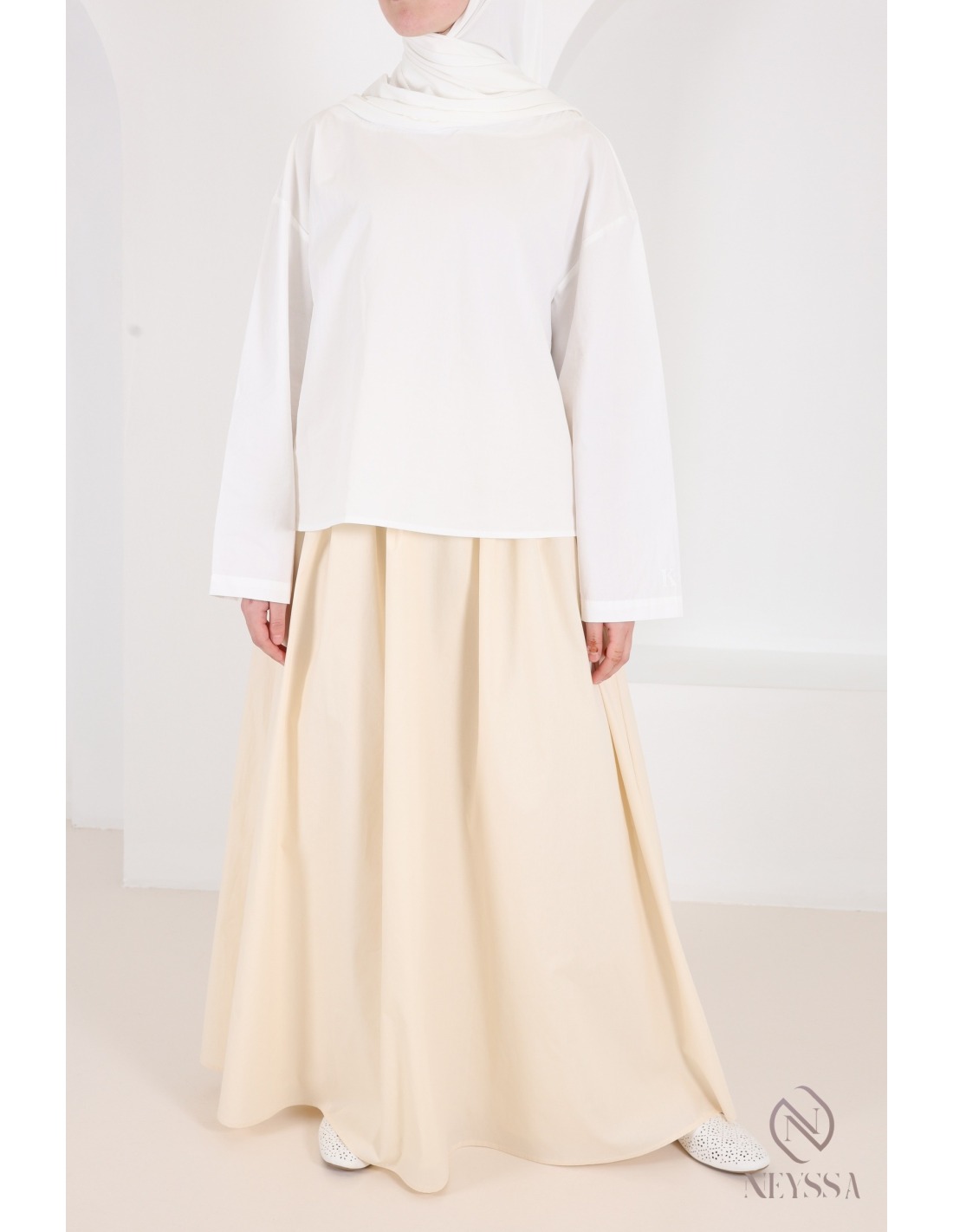 Optez pour cette jupe longue beige coton, parfaite pour toutes les saisons, dans notre catégorie vêtements modeste femme musulmane.