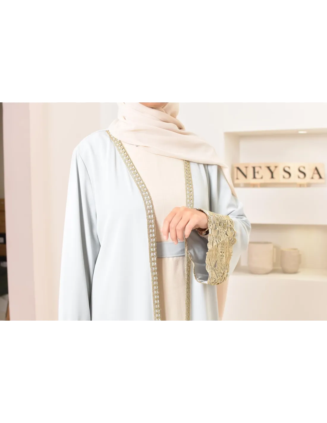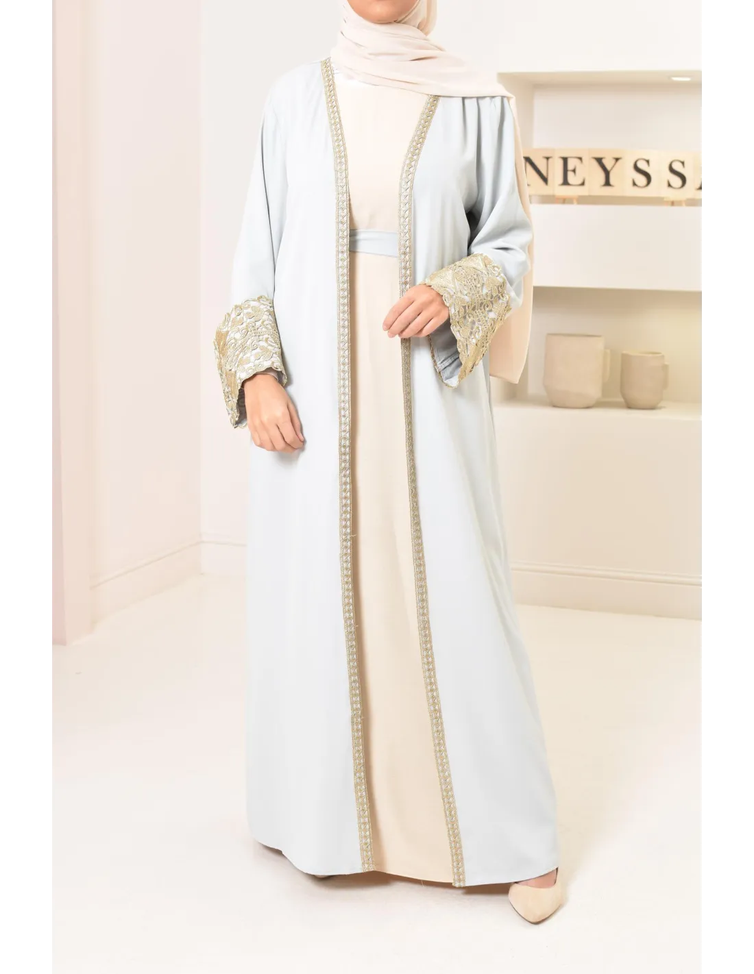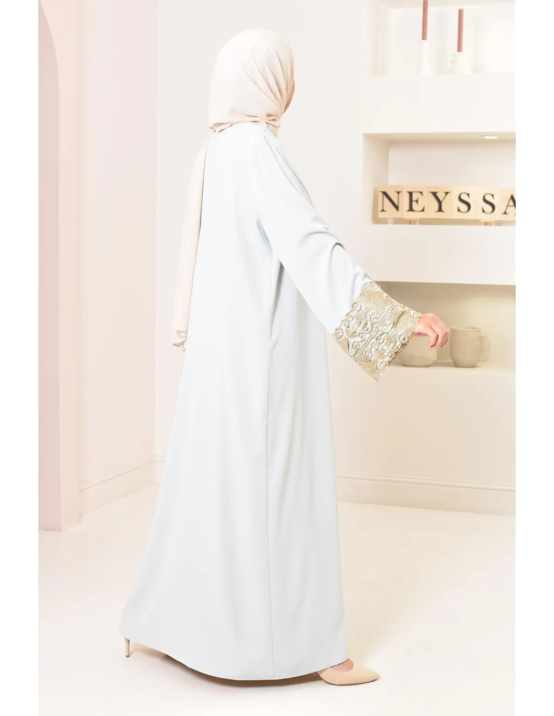 Nous vous proposons ce sublime kimono long fluide en mousseline pour vos fêtes de l'Aïd et vos évènements. Finitions  manches tulipe avec détails de broderies qui font tout le charme de cette pièce.