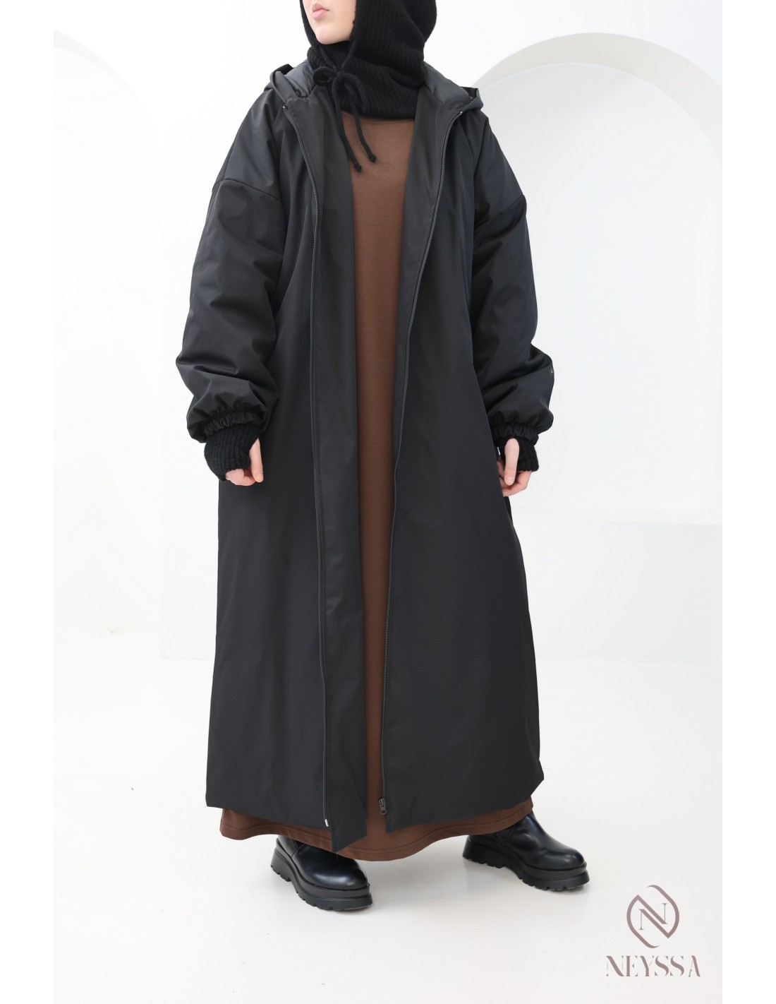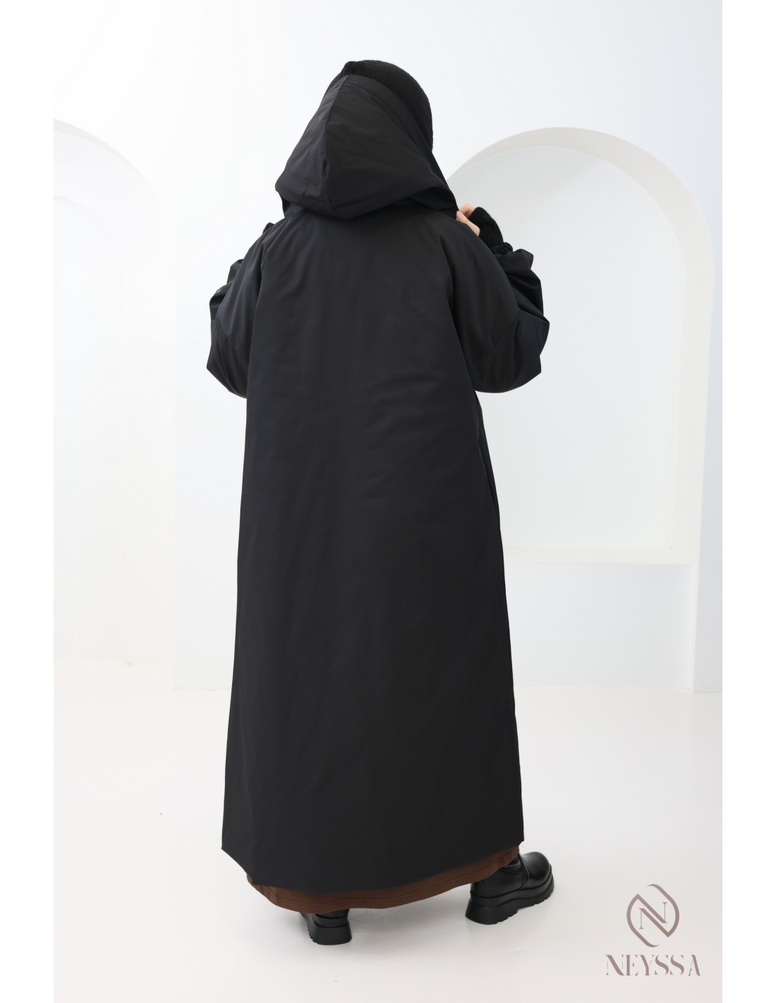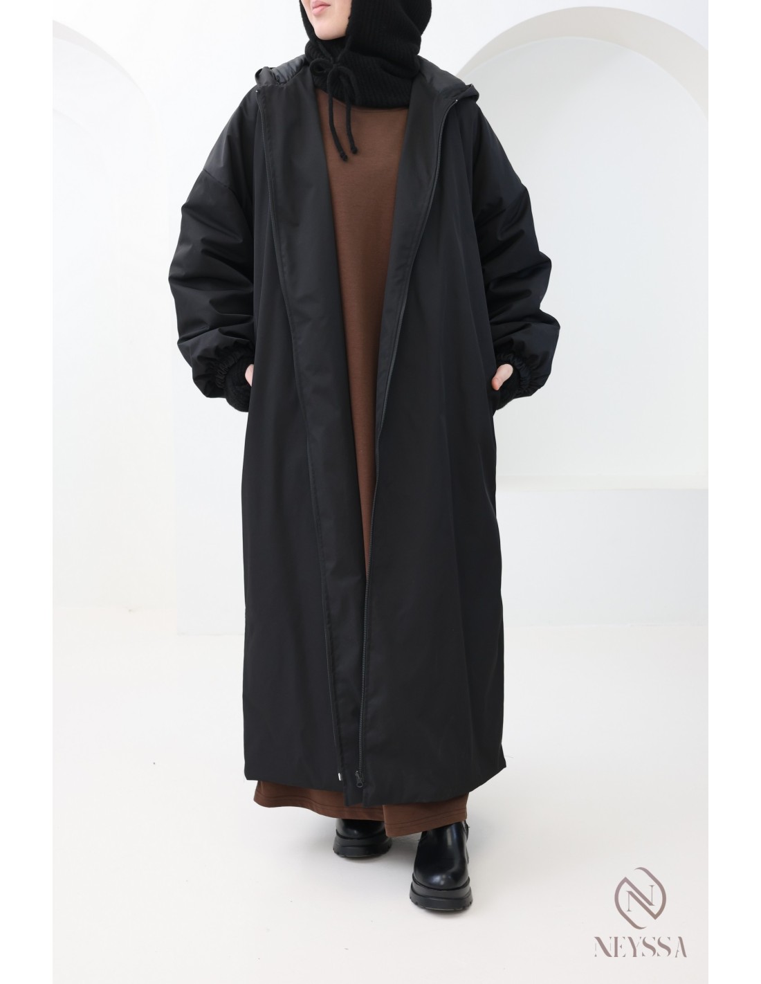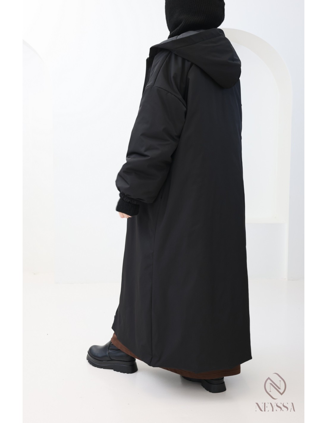 Cette parka longue hijabi est idéale pour affronter le froid sans compromis sur l’élégance et la pudeur. Sa coupe oversize et ses finitions soignées en font une pièce incontournable de la saison automne-hiver.
