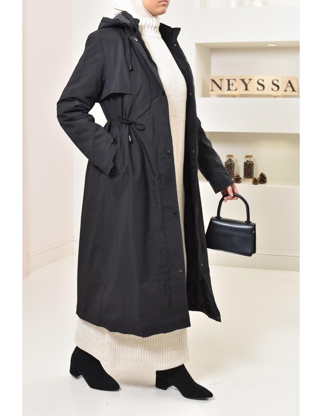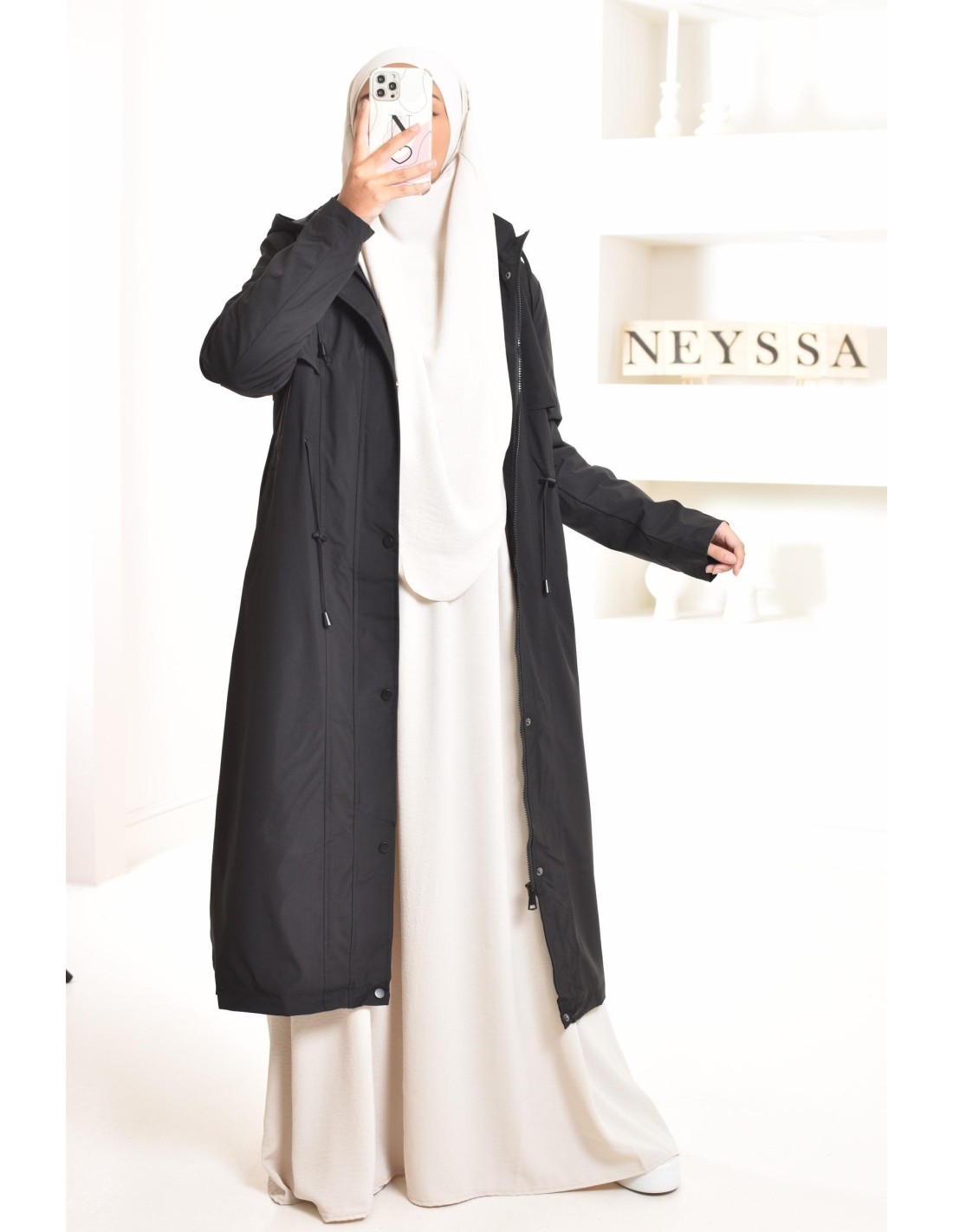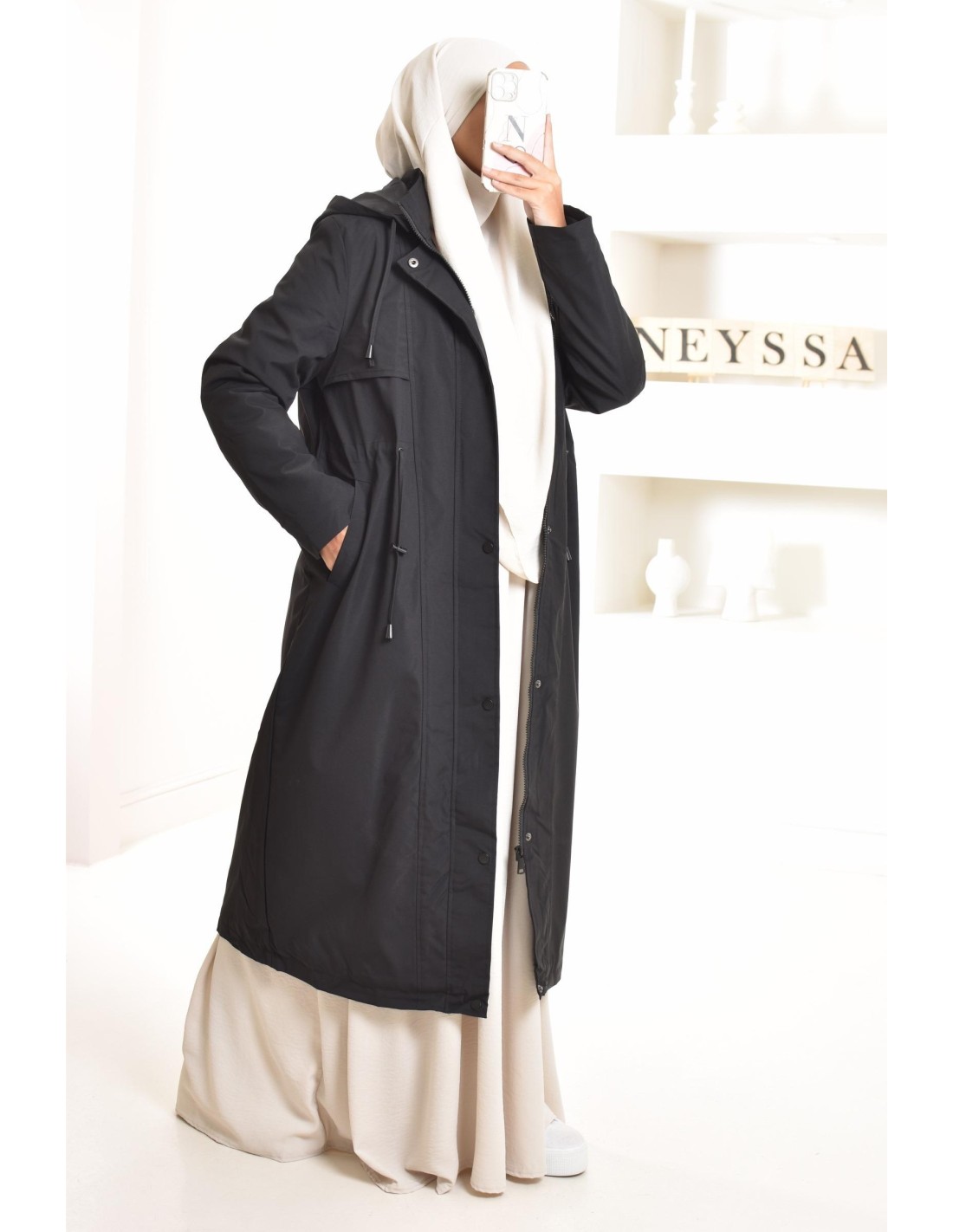 Avec cette parka noire doublée, vous pouvez créer des looks qui vous mettent en valeur tout en restant au chaud. Que vous portez un ensemble en coton, un pantalon large, une robe ou une abaya, tout ira parfaitement bien avec la parka.