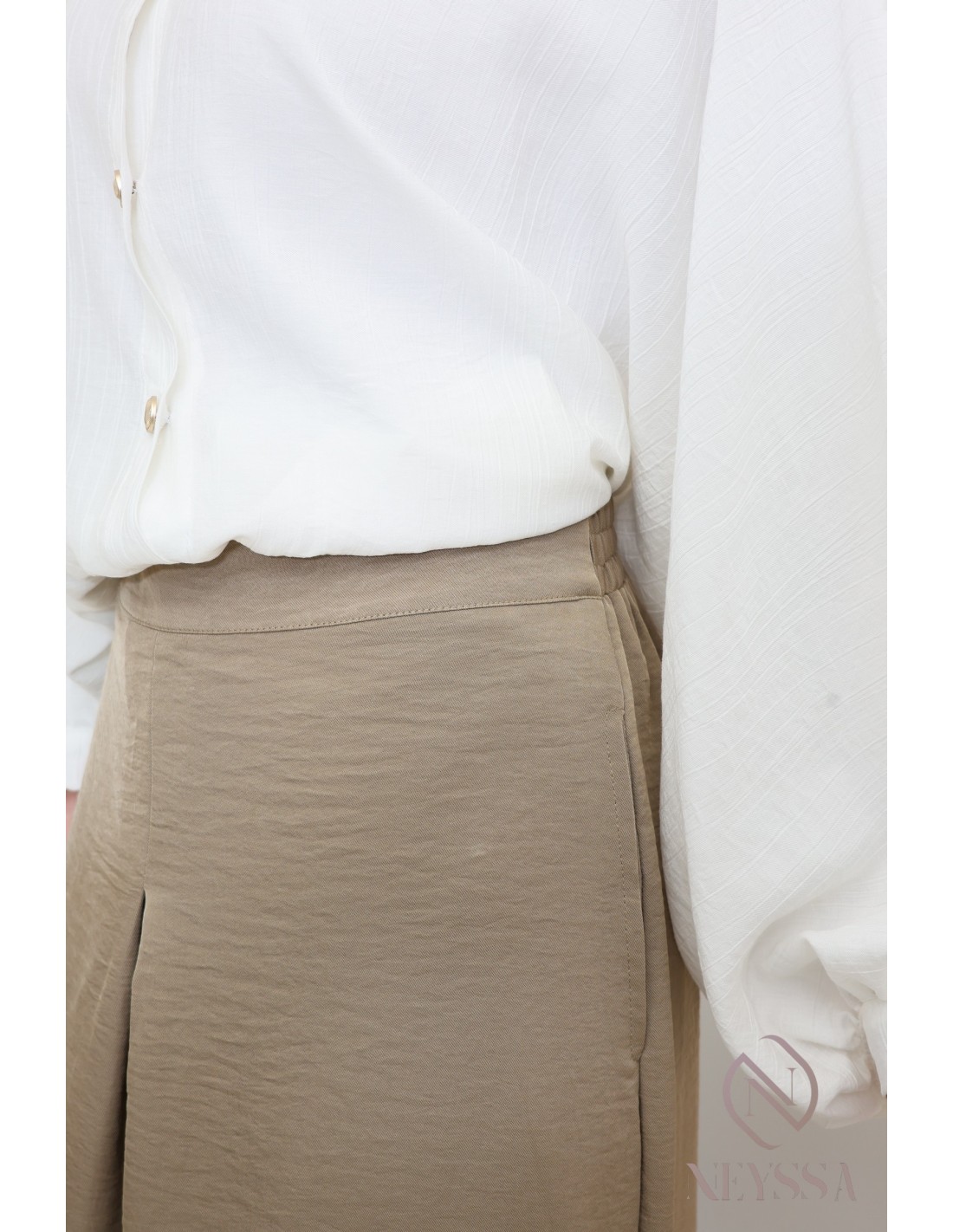 • Tissu effet lin brillant : cette matière apporte douceur et fluidité. Le côté brillant vous donnera une allure ultra élégante.