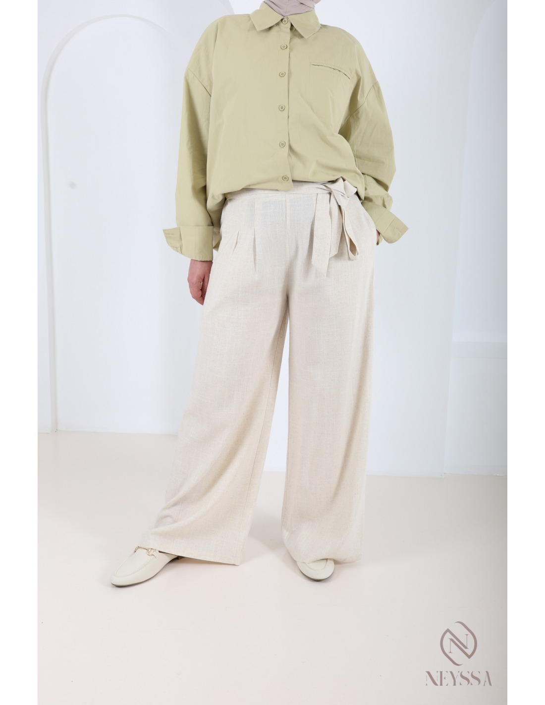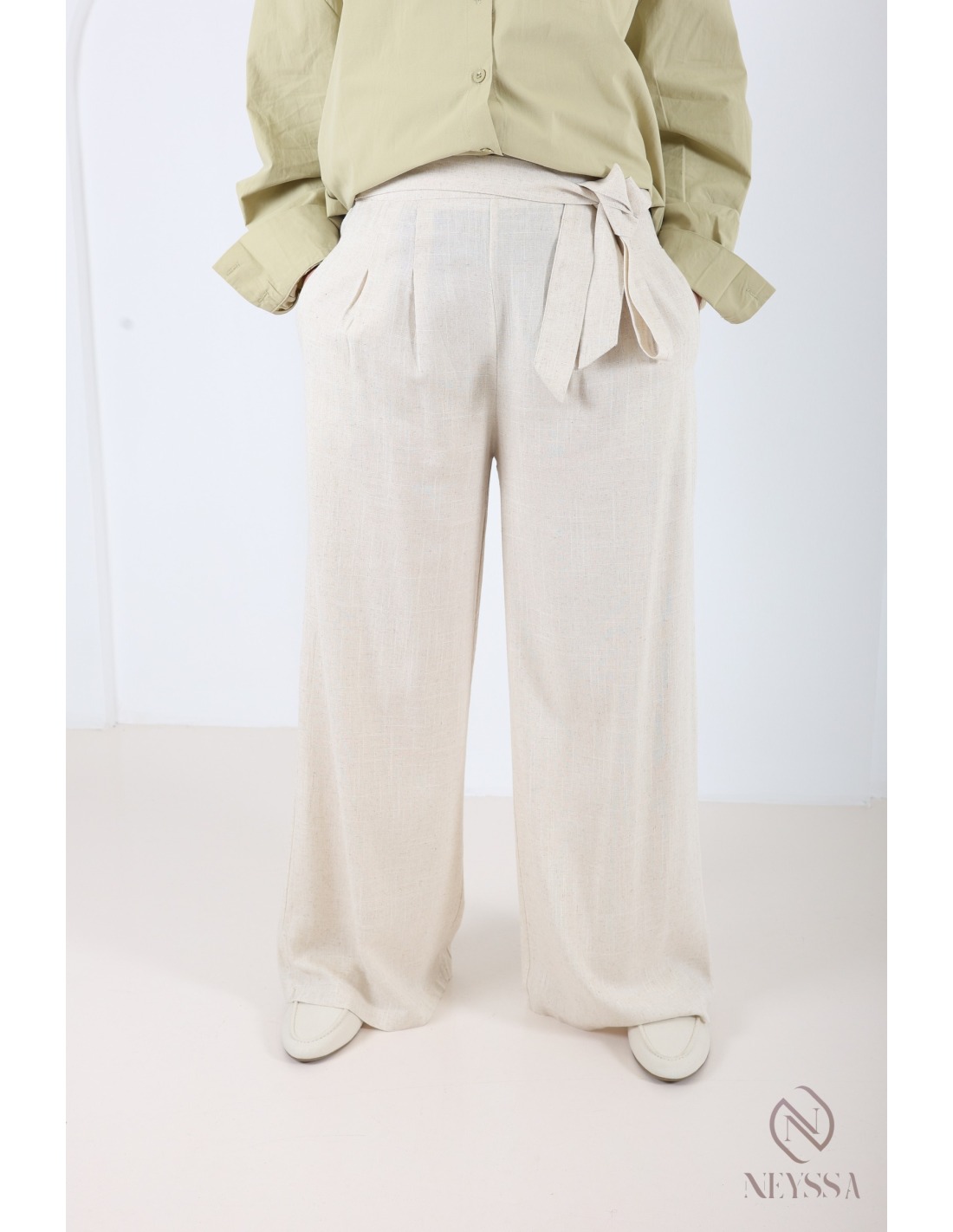 Optez pour ce palazzo lin ceinture intégré.