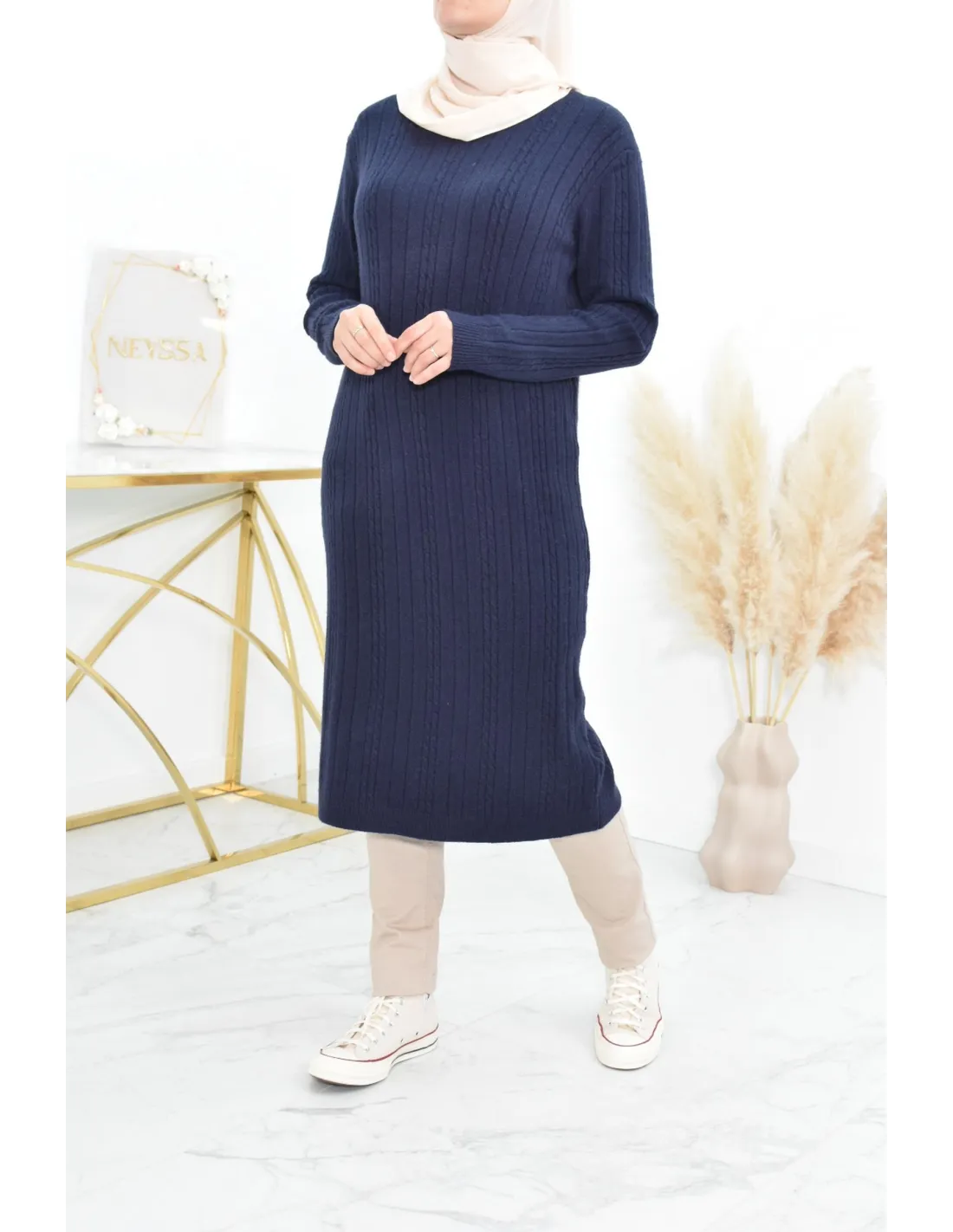 Vous recherchez une robe pull longue douce et à la fois élégante?