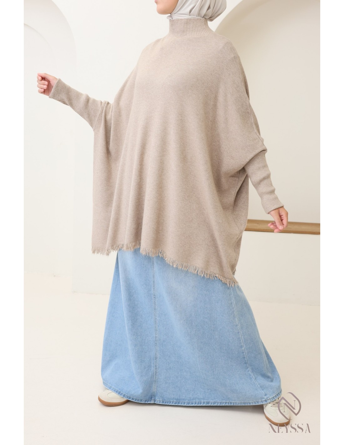 - Coupe oversize: Design ample et décontracté, parfait pour un look modest fashion moderne tout en assurant liberté de mouvement.