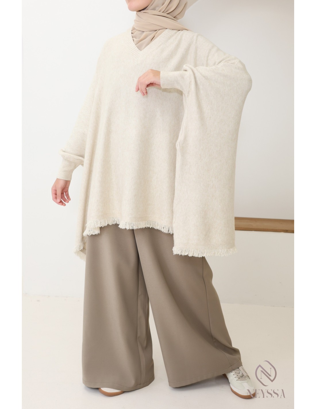 Idées de looks avec pull en maille style poncho à franges oversize :