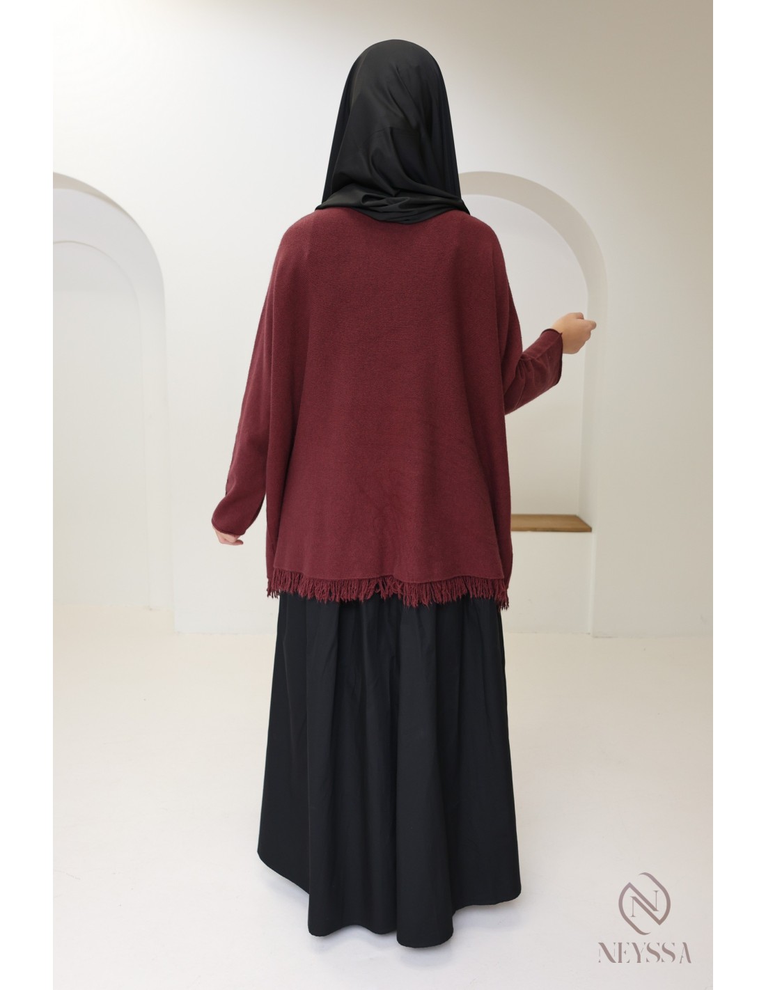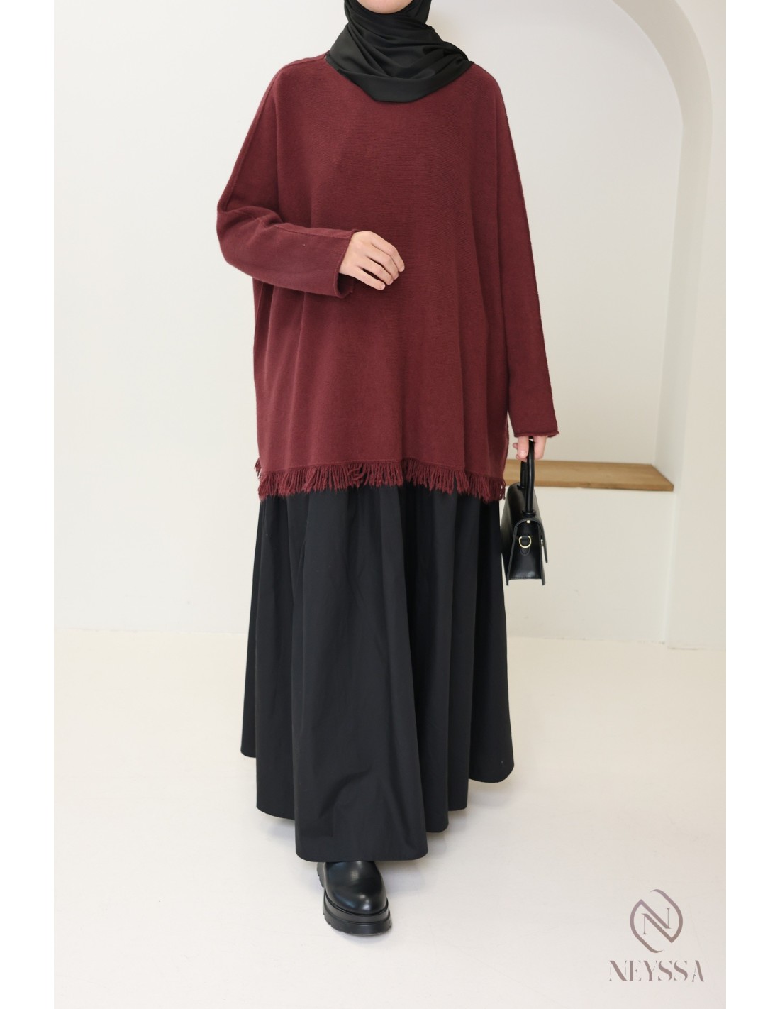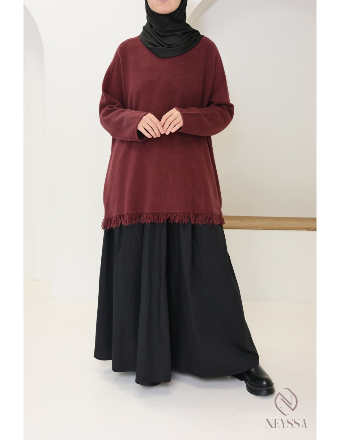 Pull en maille mi long pour femme hijabi tendance avec franges