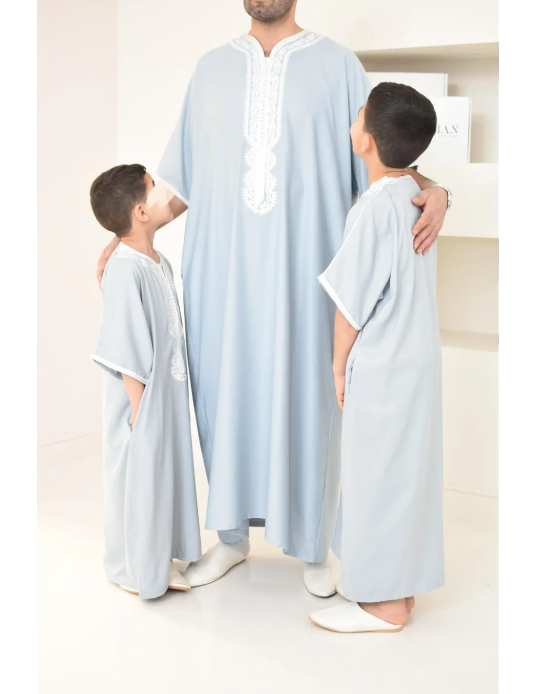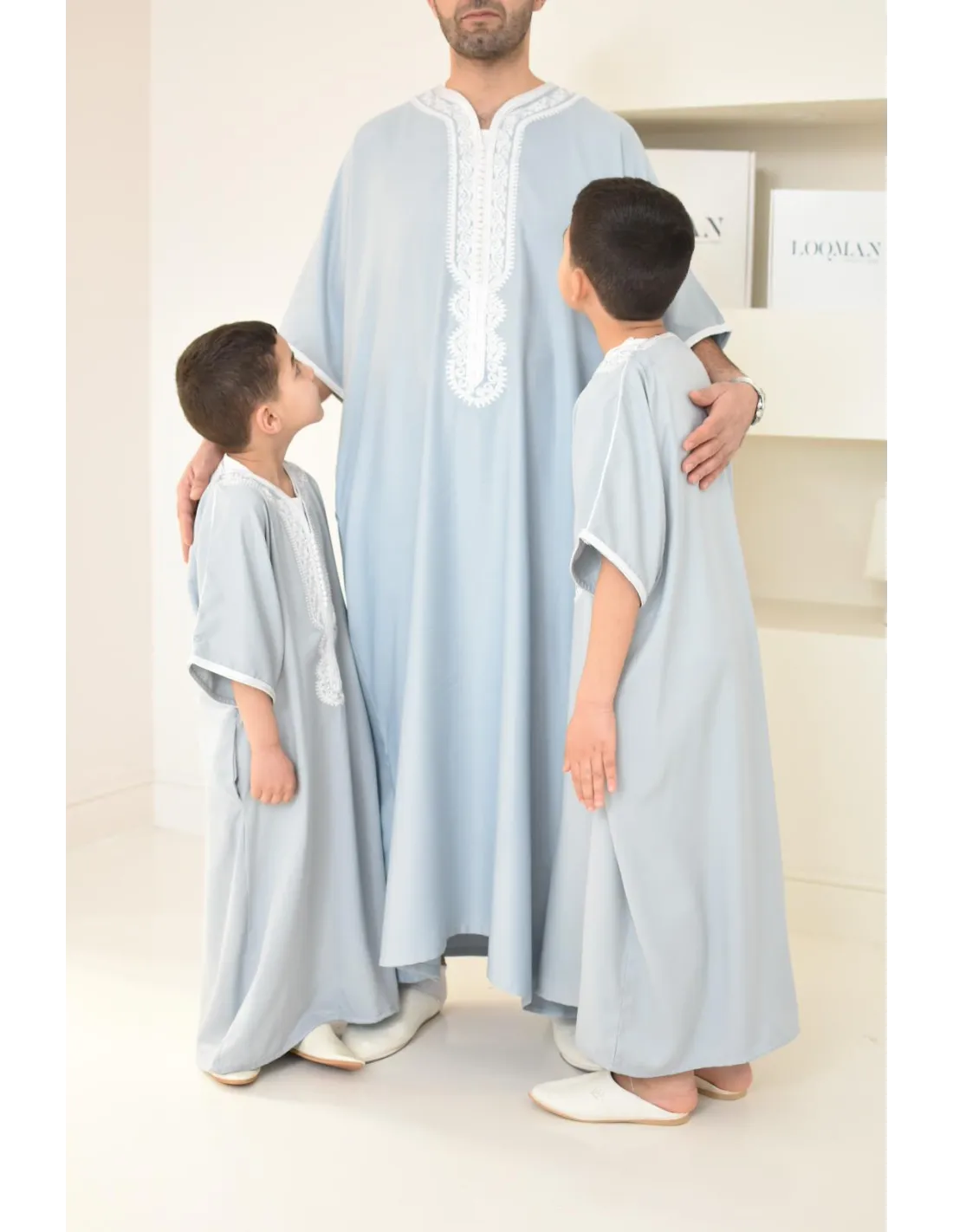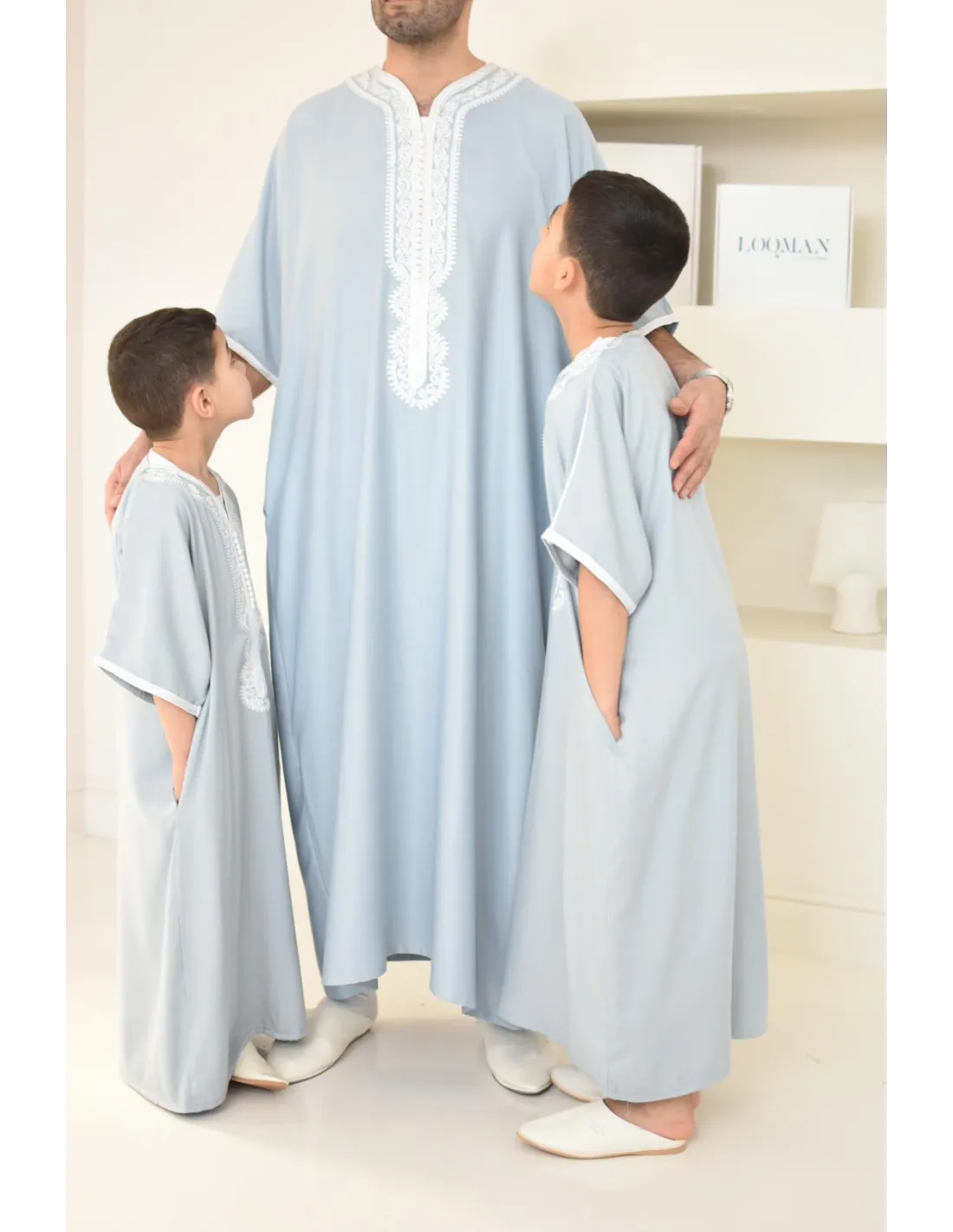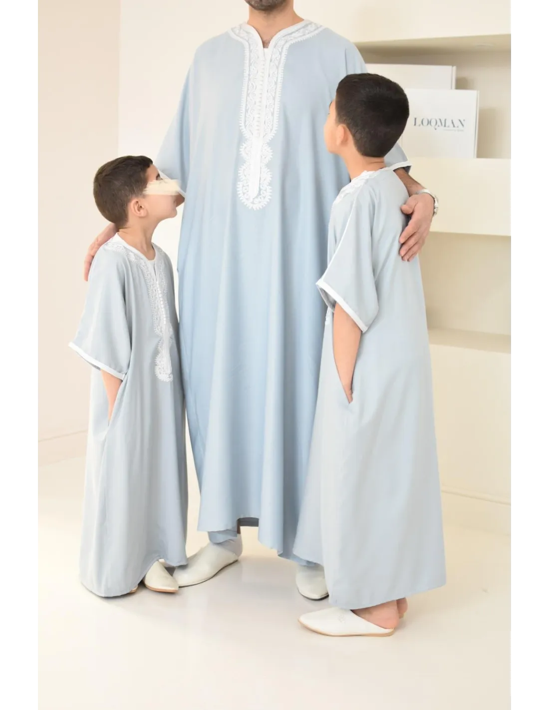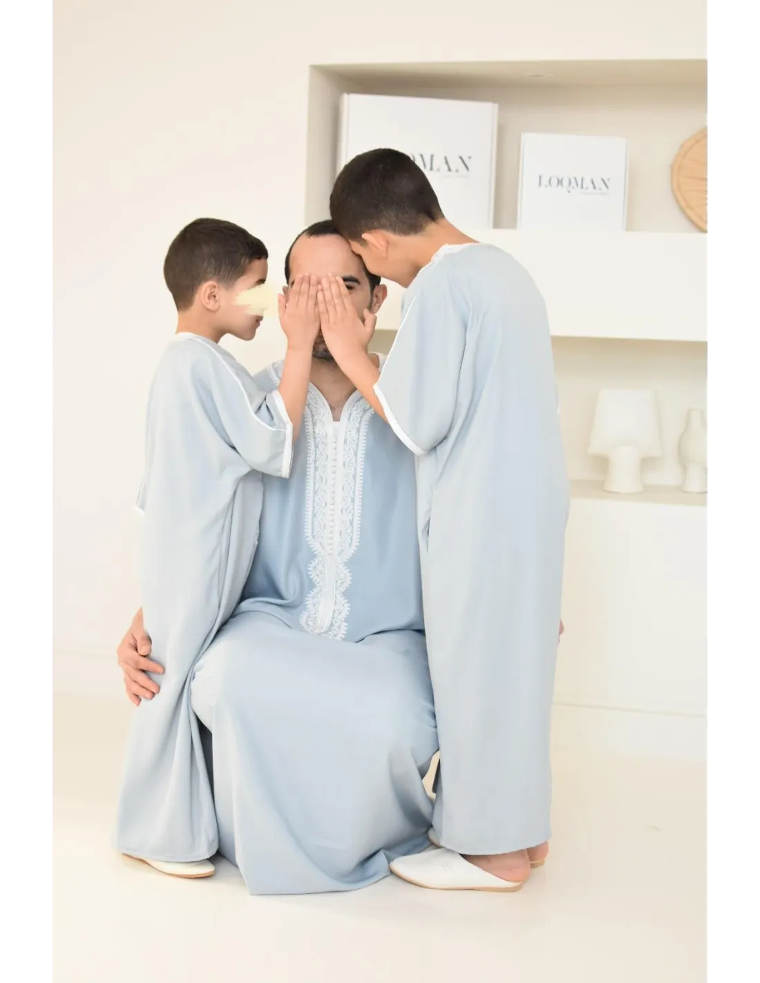 Qamis Marocain HOMME/ENFANT Loqman Bleu jean