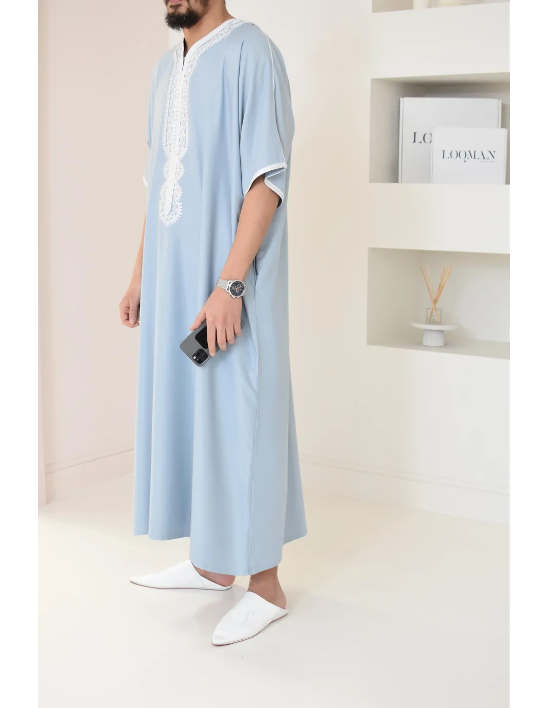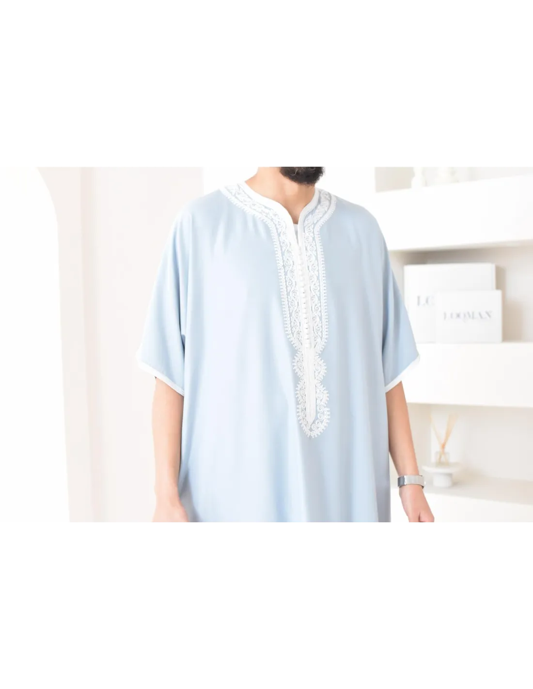 Qamis bleu Gandoura Marocaine pour homme: Le plus beau cadeau attentionné que vous pouvez faire à votre époux.