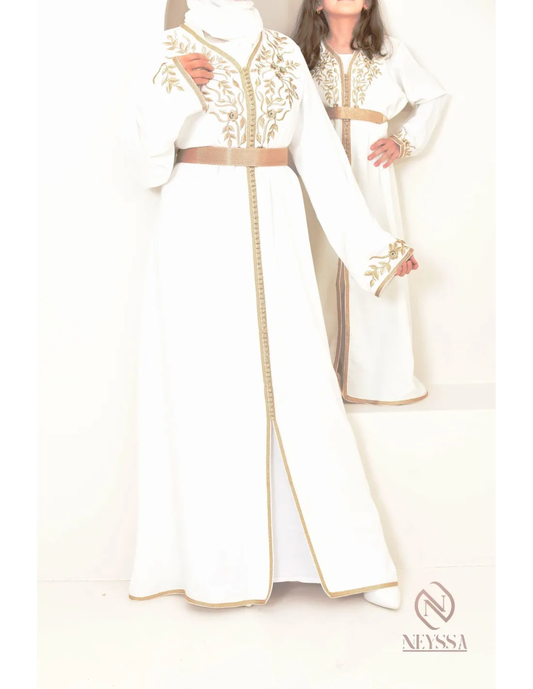 - Finitions parfaites : léger col V orné de magnifiques broderies ainsi qu'une splendide sfifa doré qui longe la robe