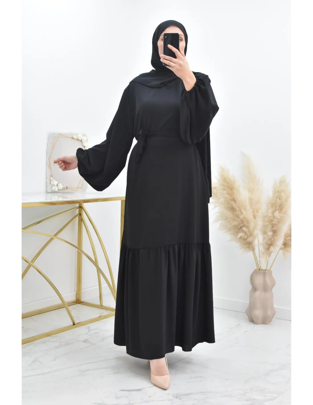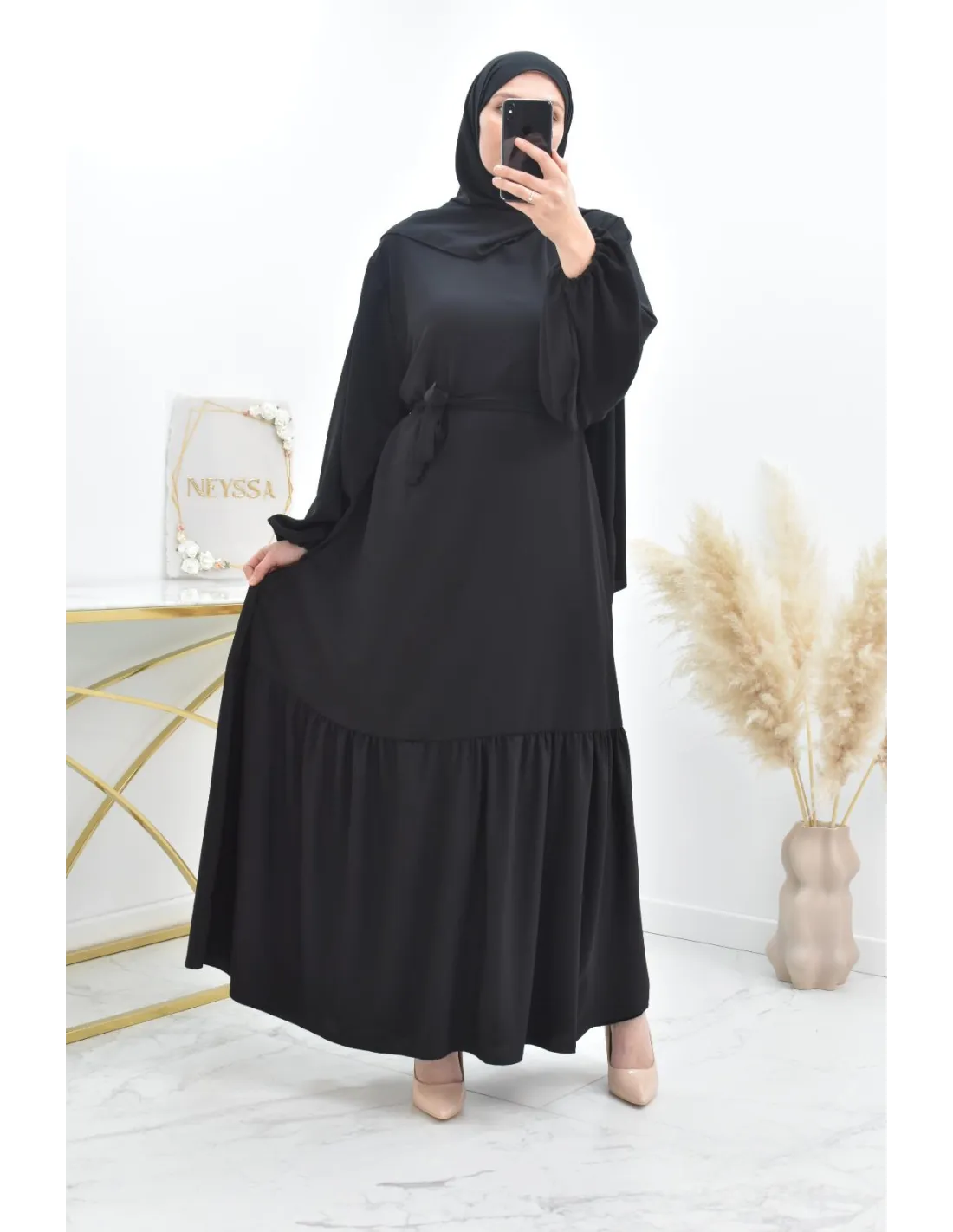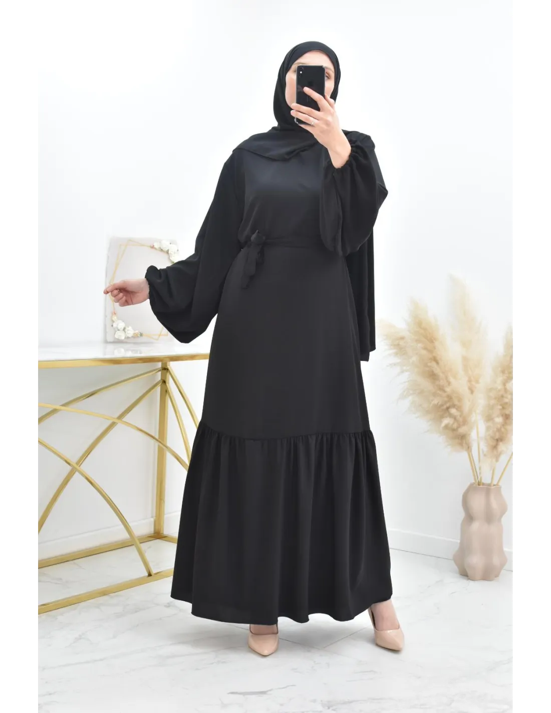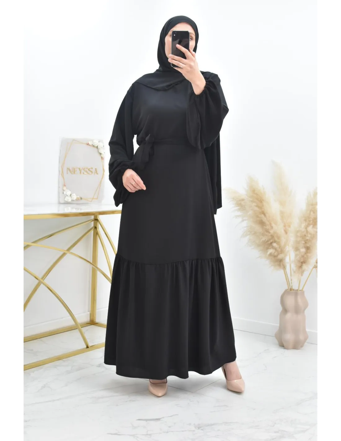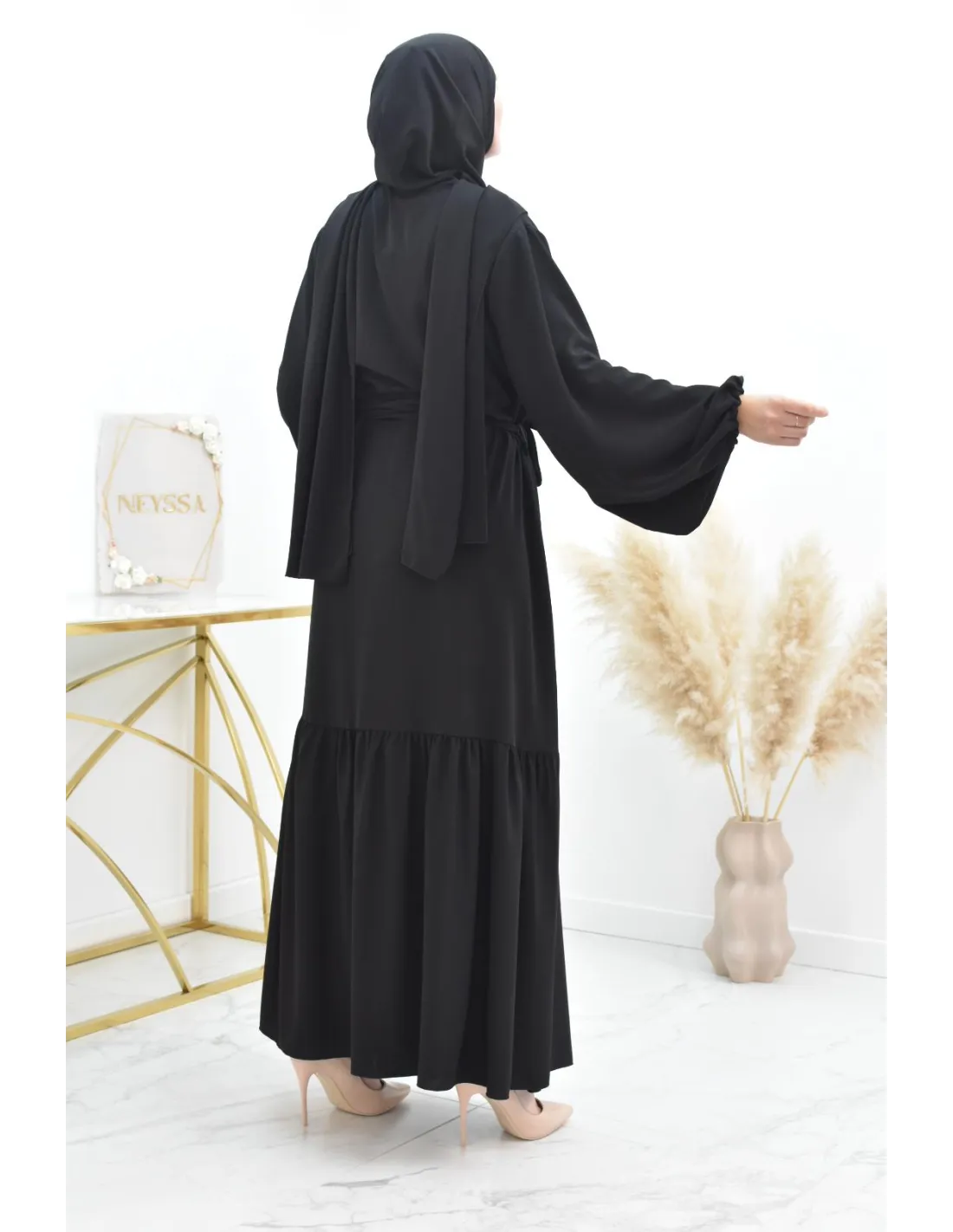 • Robe longue avec son hijab intégré cousu au col