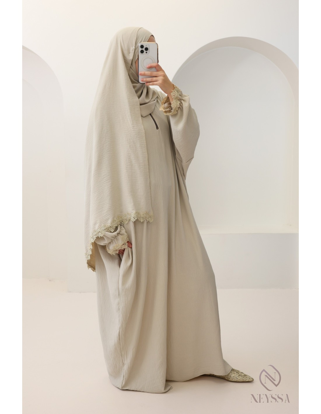 Abaya de prière papillon en jazz avec hijab intégré, Neyssa Confection