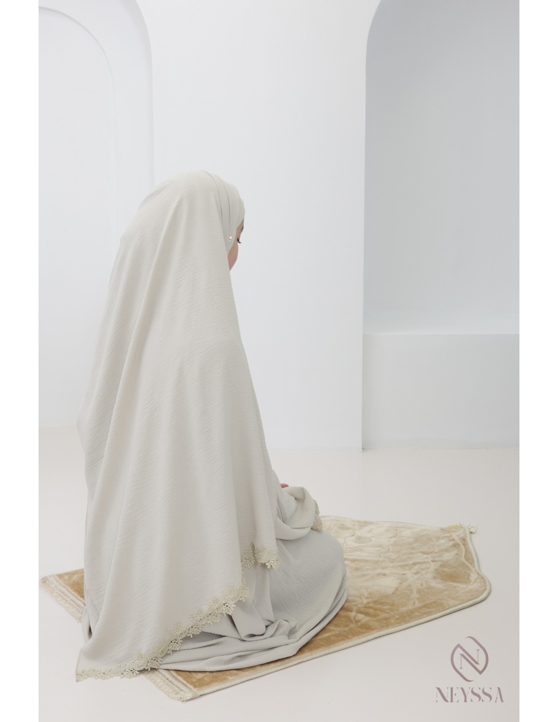 Cette abaya de prière voile intégré sera une parfaite idée cadeau pour une sœur ou pour votre belle-mère par exemple. C'est la tenue idéale pour se rendre à la mosquée ou pour accueillir sa famille chez soi.