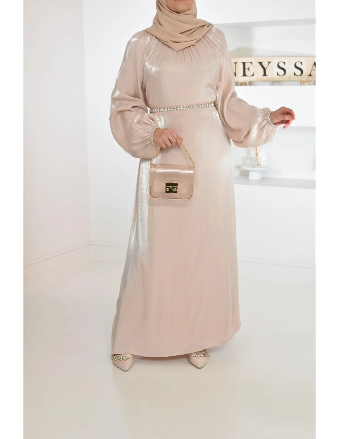 Longue mastour organza lumineuse coupe évasée pour femme voilée