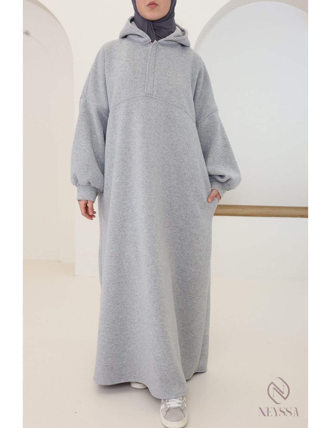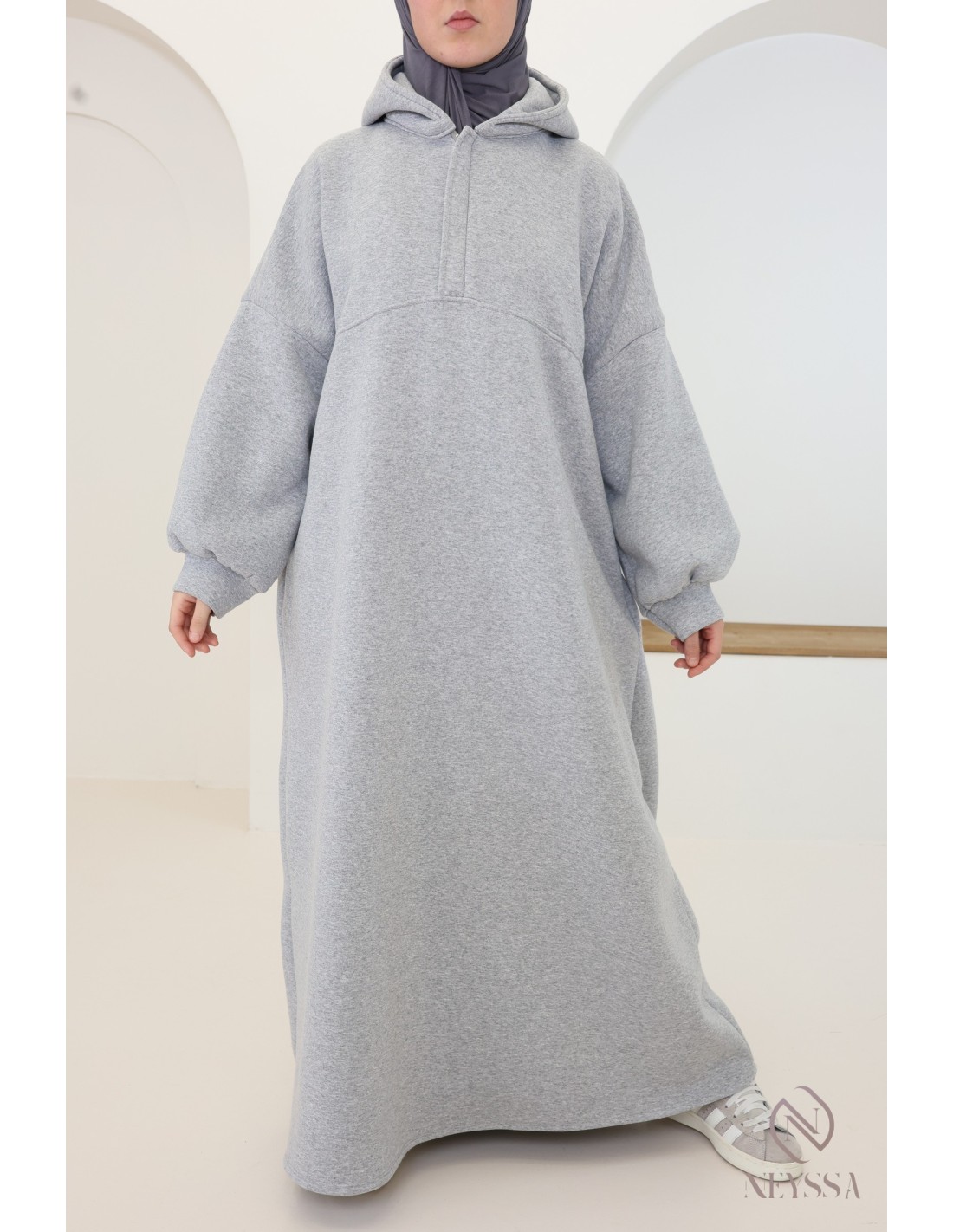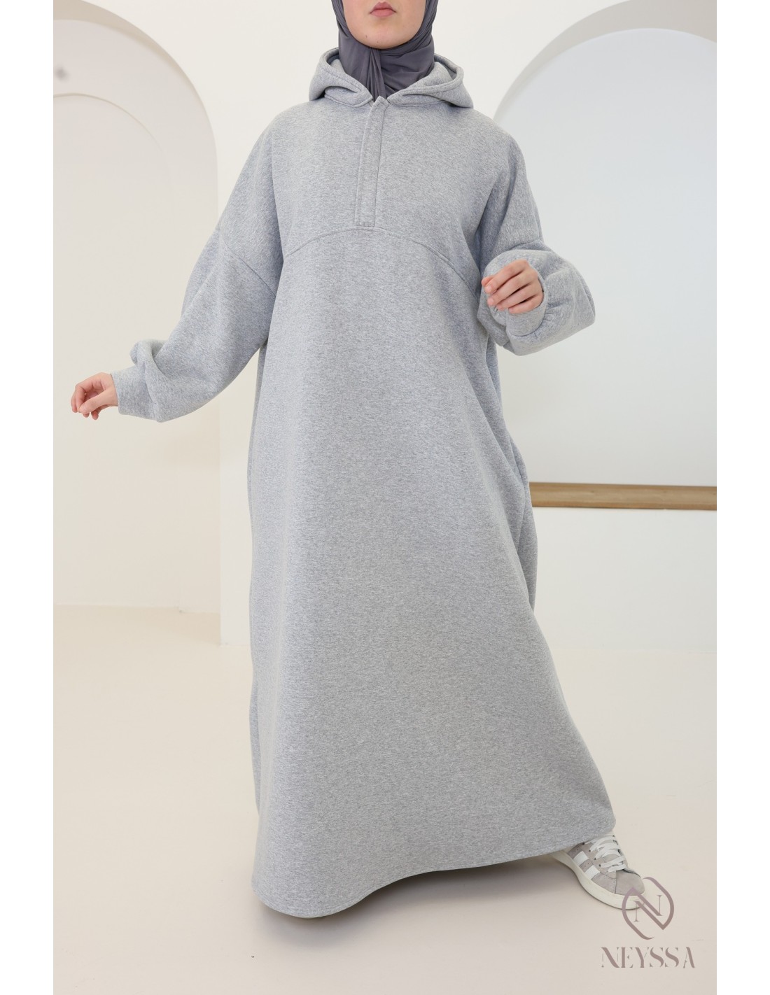 Robe longue style sweat col zippé à capuche oversize femme hijabi