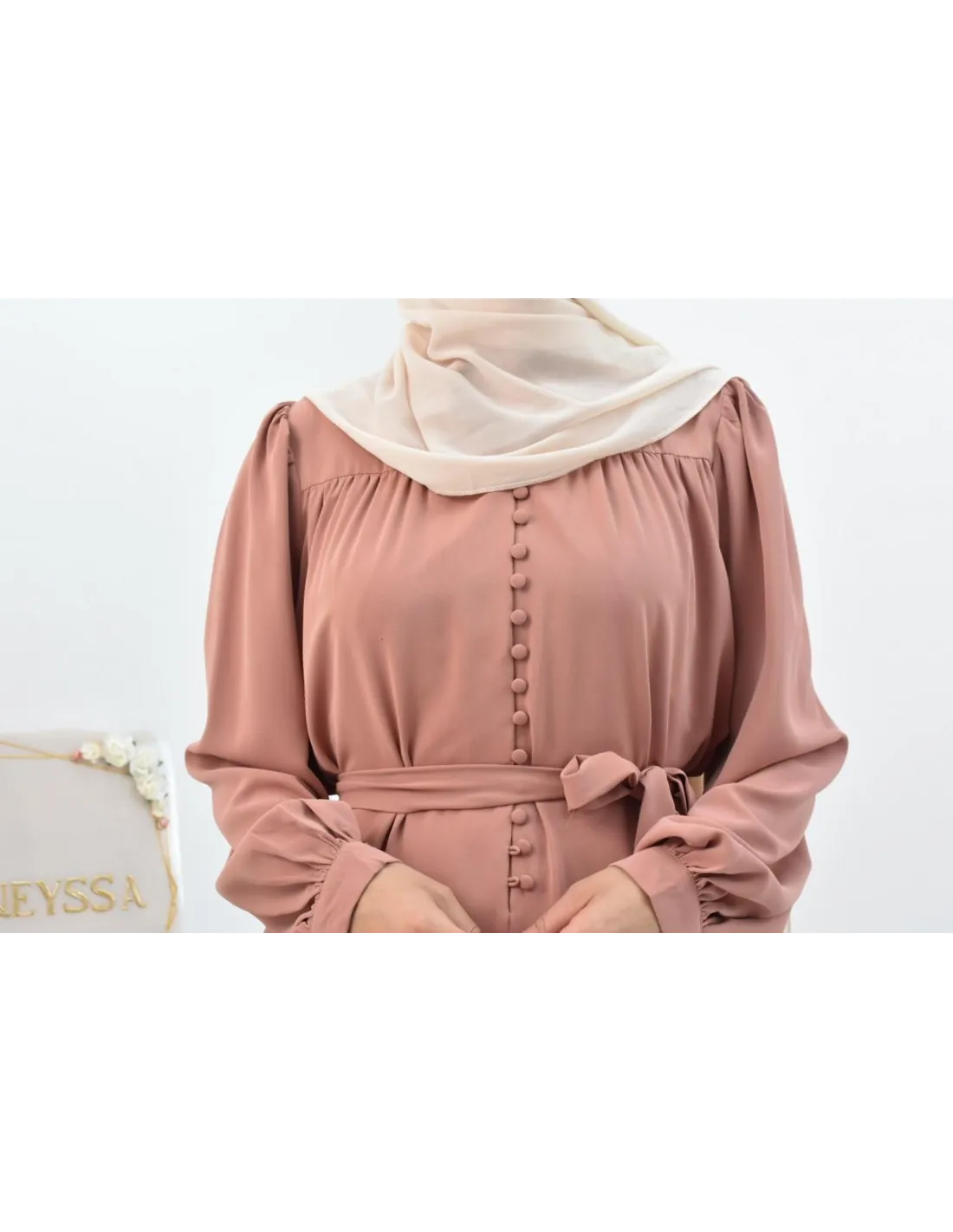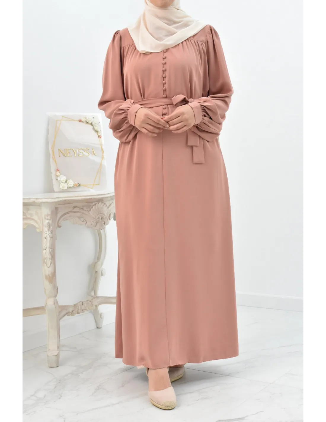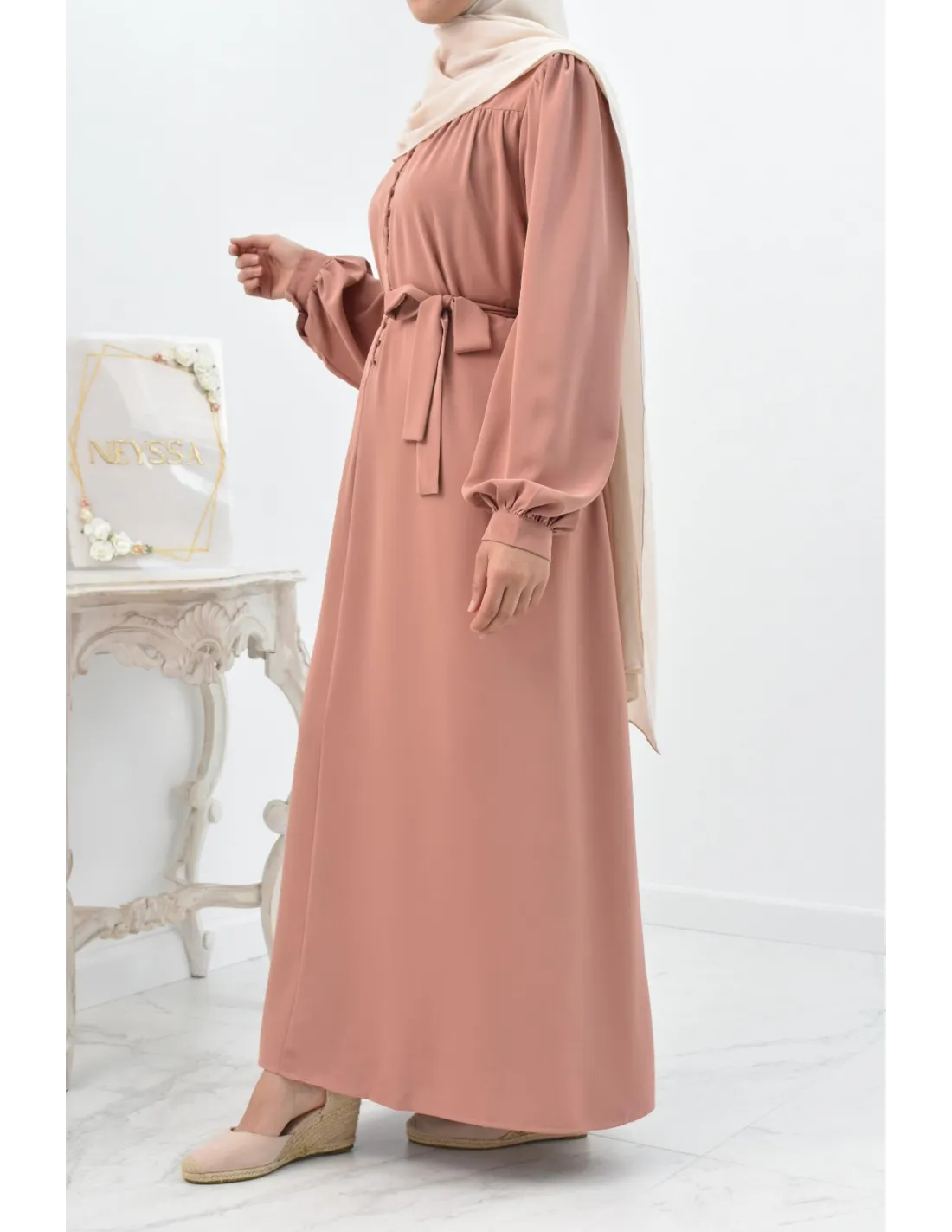 - Robe longue aux manches longues larges boutonnées aux poignées