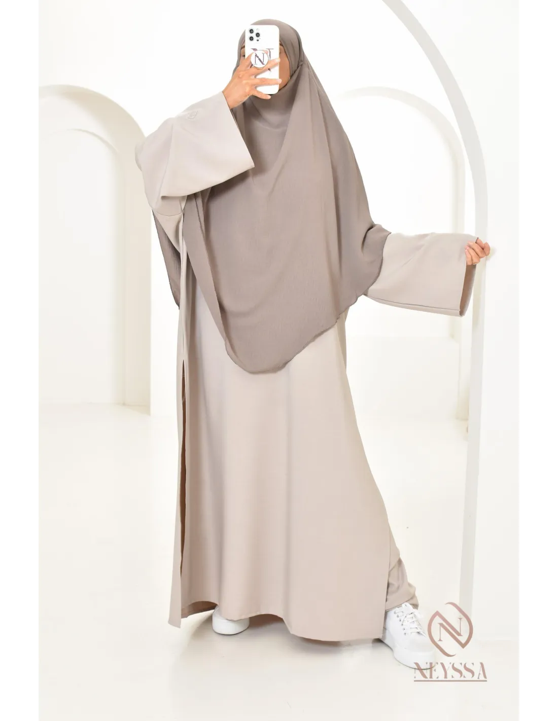 • Tunique longue avec fentes : La tunique offre un bel effet de superposition. Sa coupe papillon offre une facilité de mouvement et la couverture de la awra est garantie ! Ses fentes sur les côtés font tout le charme de la pièce.