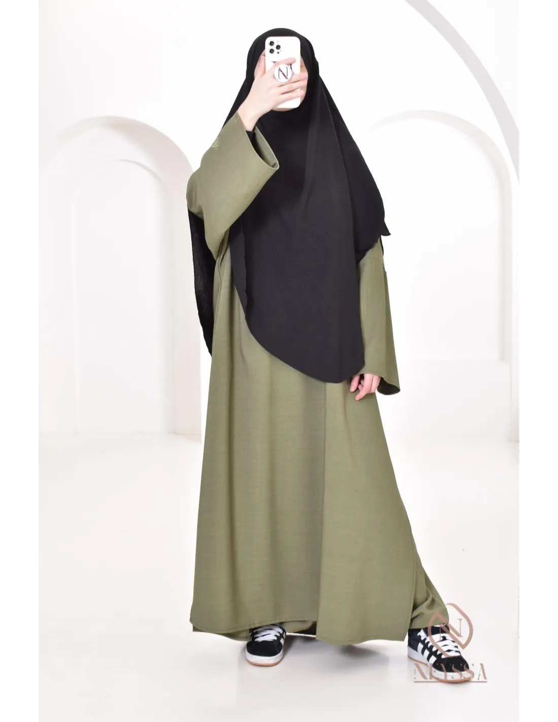 • Tunique longue avec fentes : La tunique offre un bel effet de superposition. Sa coupe papillon offre une facilité de mouvement et la couverture de la awra est garantie ! Ses fentes sur les côtés font tout le charme de la pièce.
