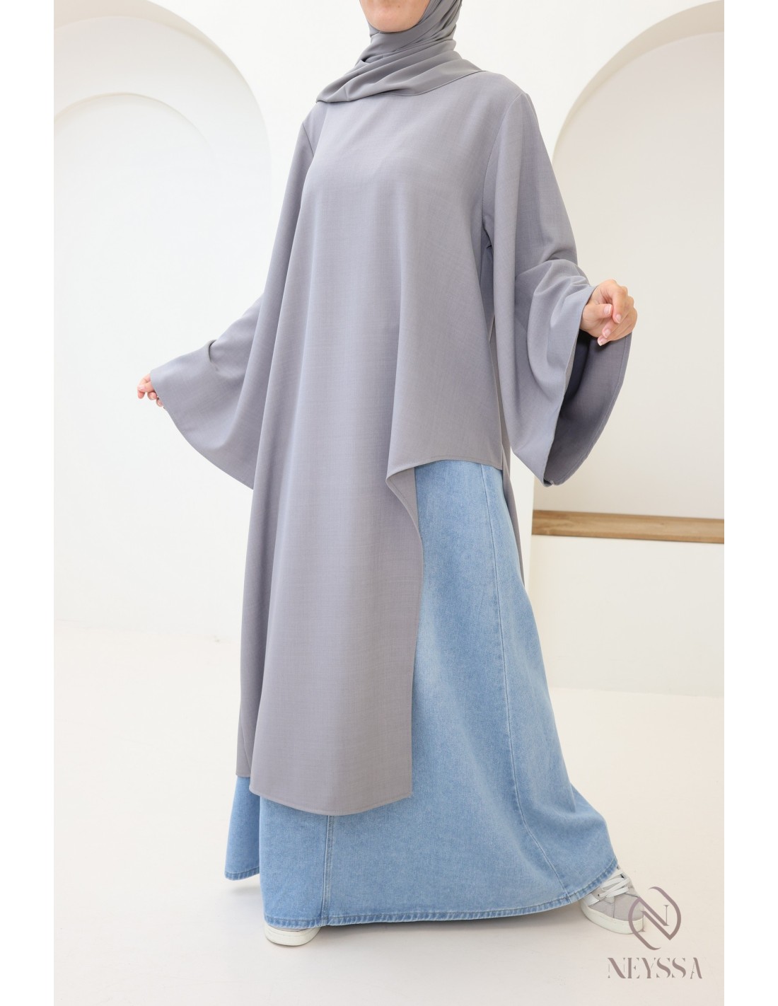 • Tunique longue avec fentes : La tunique offre un bel effet de superposition. Sa coupe papillon offre une facilité de mouvement et la couverture de la awra est garantie ! Ses fentes sur les côtés font tout le charme de la pièce.