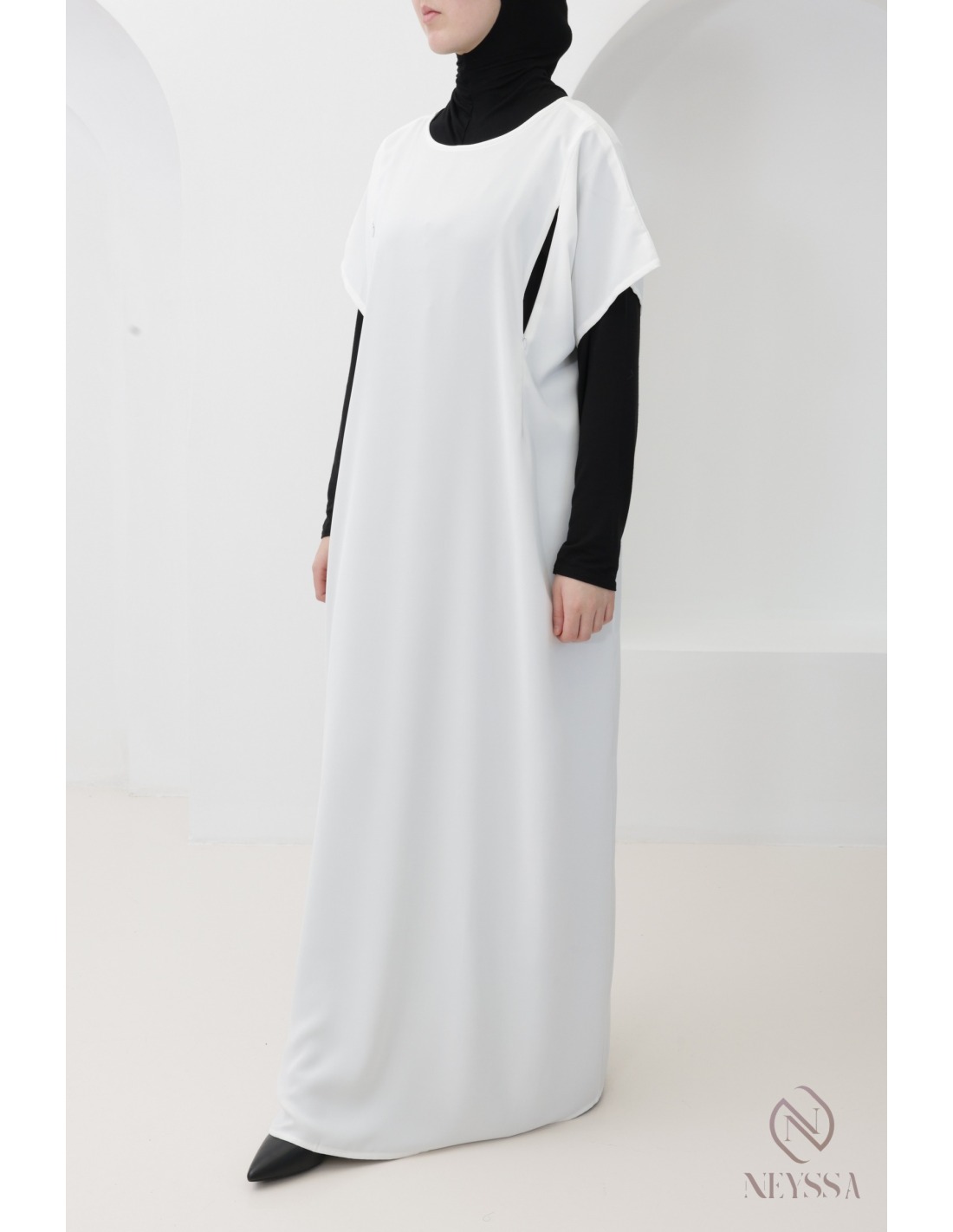 Neyssa vous propose cette sous abaya zip allaitement  indispensable pour porter avec vos kimonos Dubaï, vos Caftan kimono ou longue cape ouverte.
