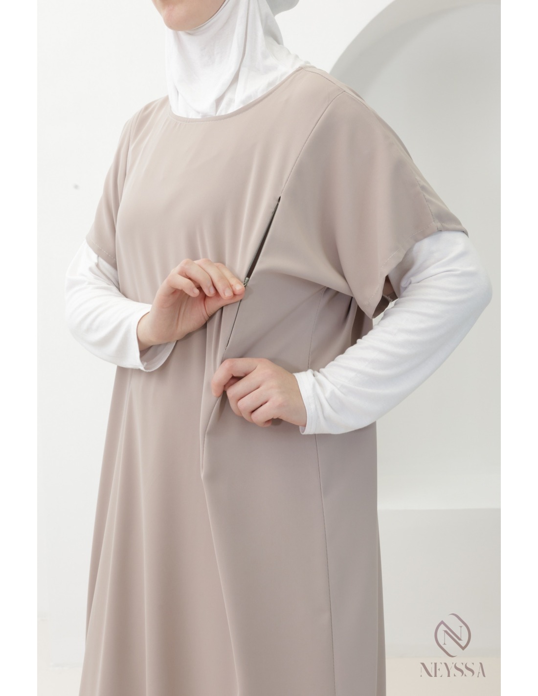 Sous abaya avec zip allaitement manches courtes en nidah femme