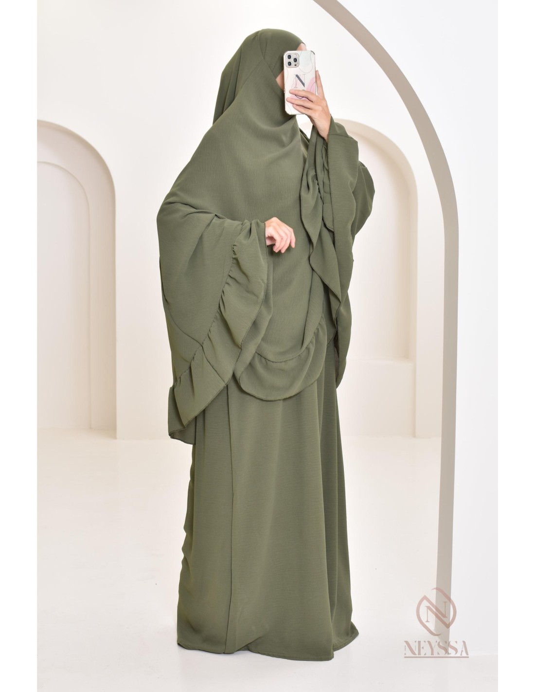 Ensemble abaya khimar 1m80 en jazz, khimar long avec froufrou