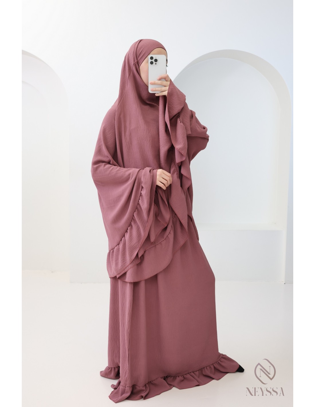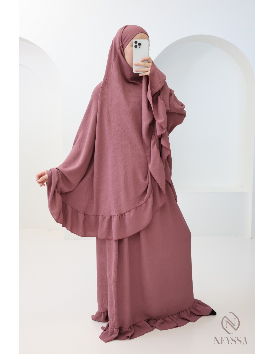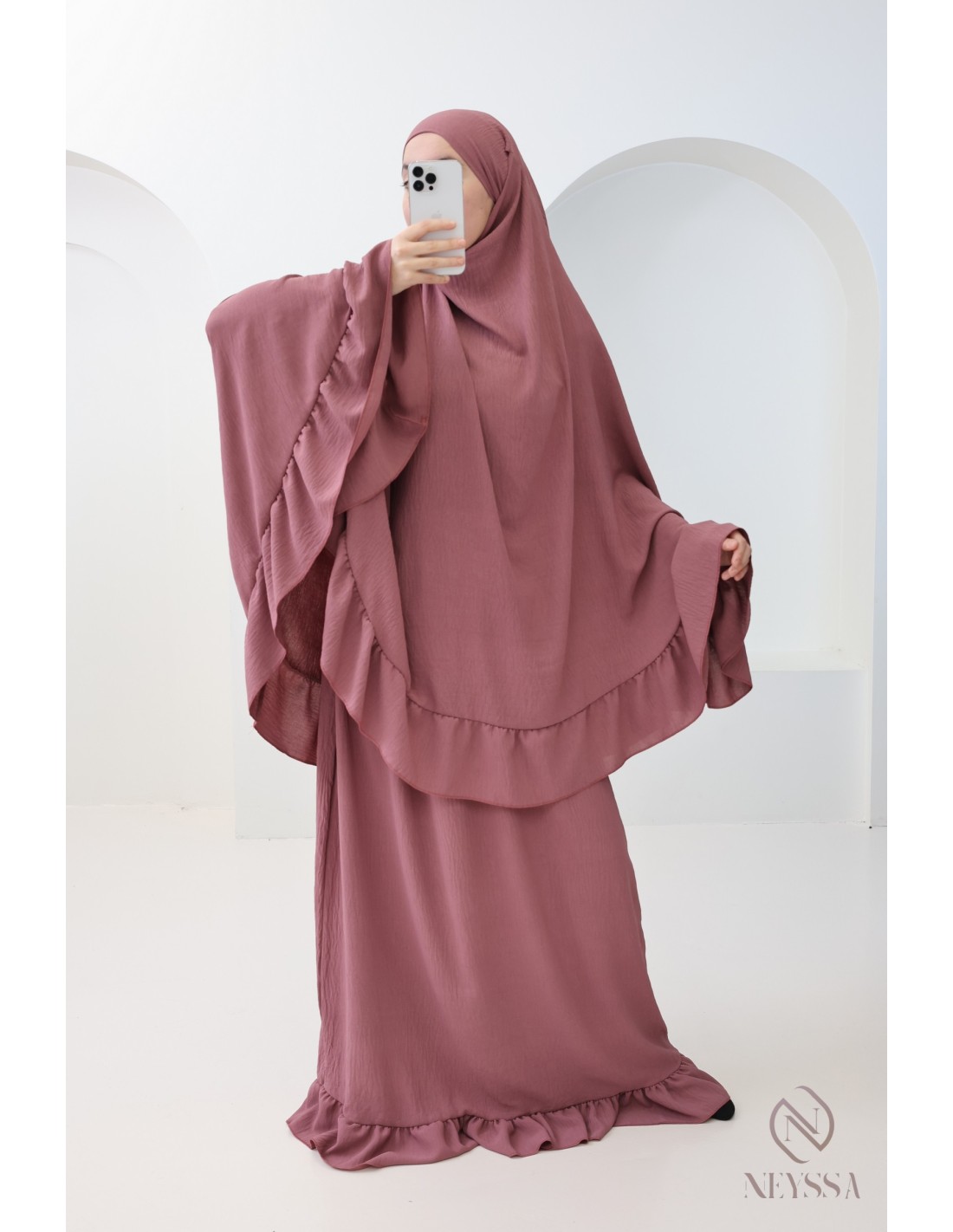 Tenue de prière 2 pièces avec jupe élastique La tenue légiférée pour prier et se rendre à la mosquée.
