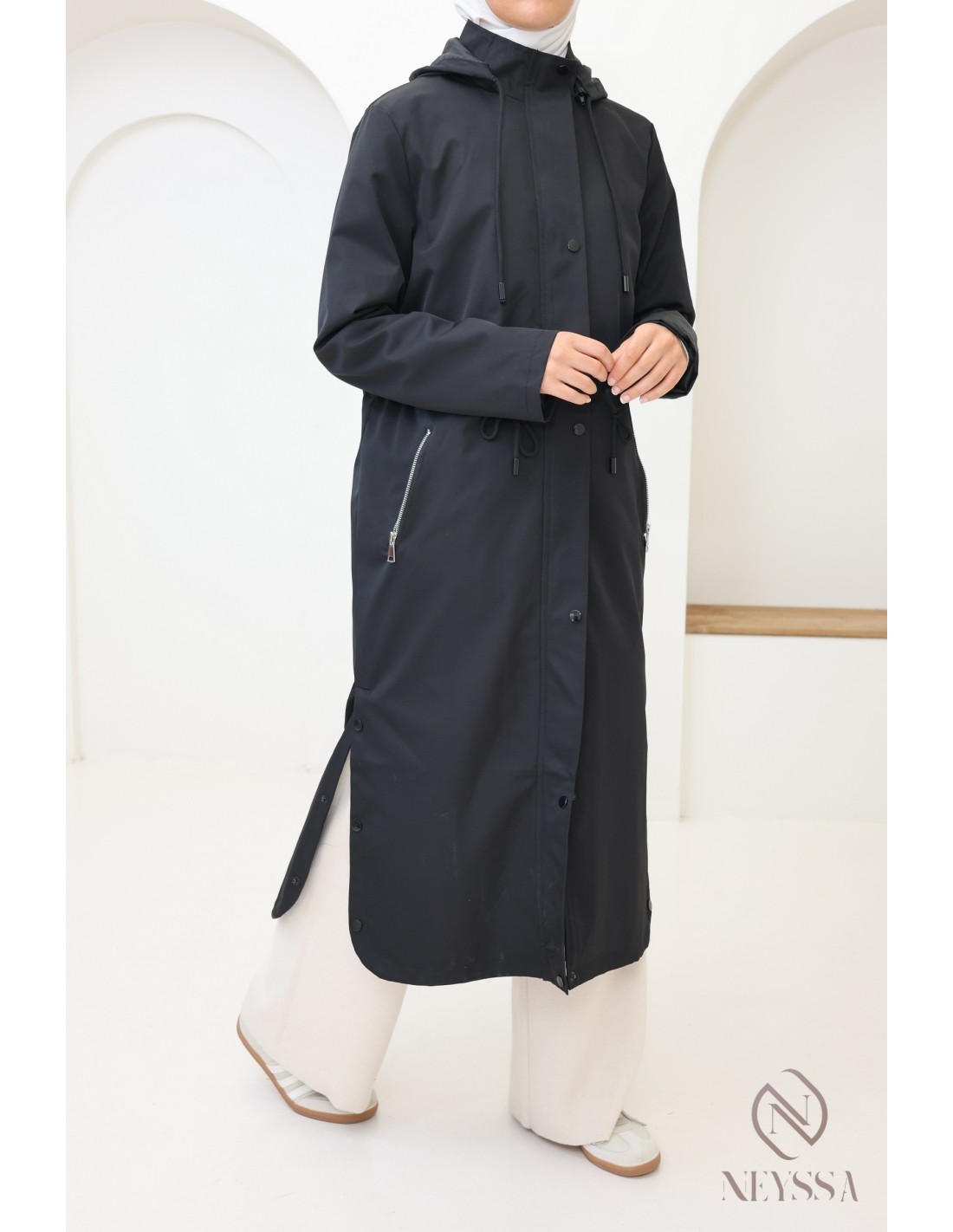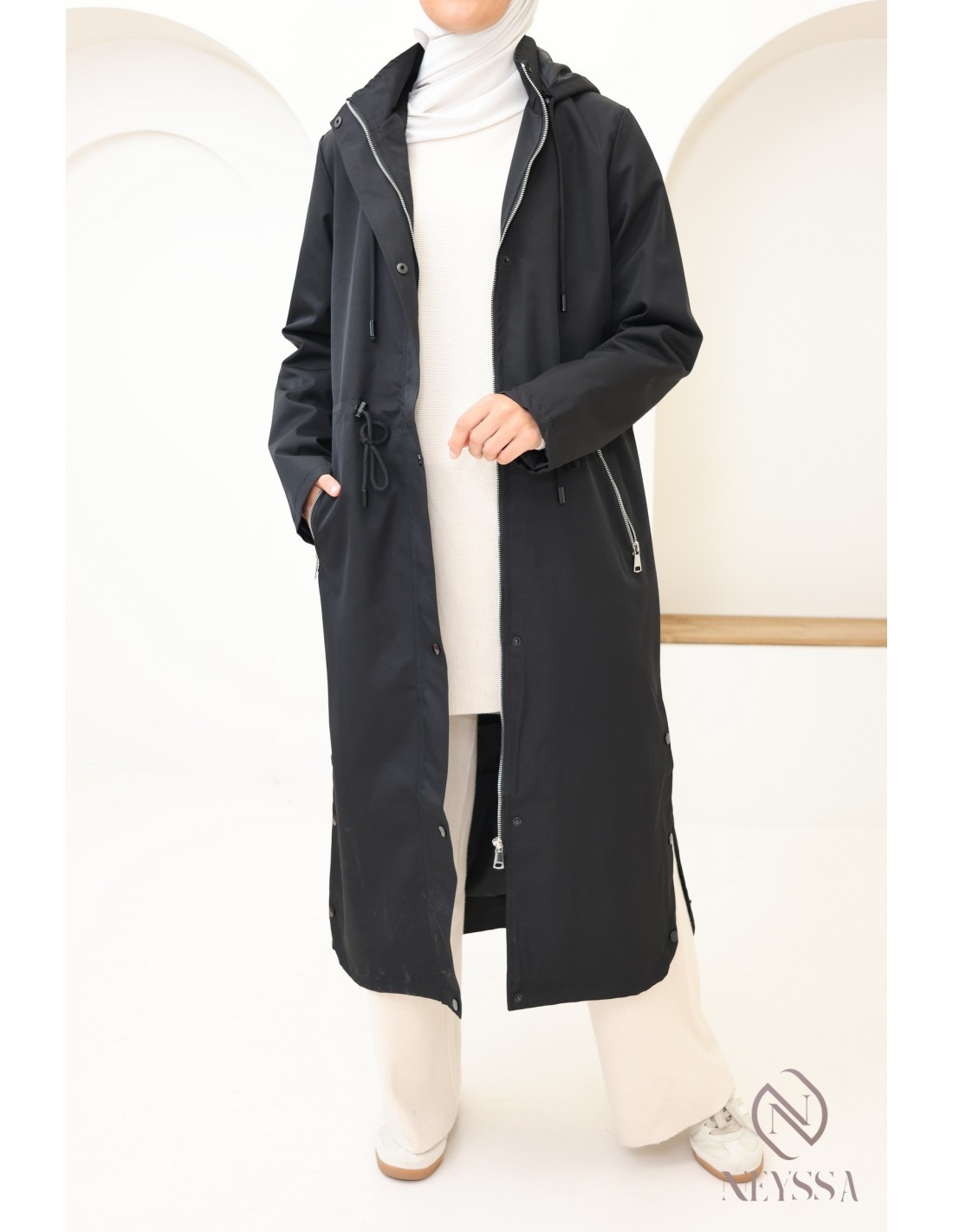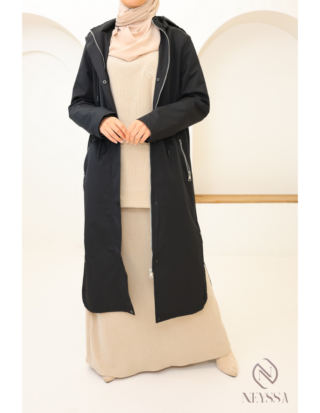 Veste longue coupe droite pour femme hijabi tendance : idéale pour les temps pluvieux