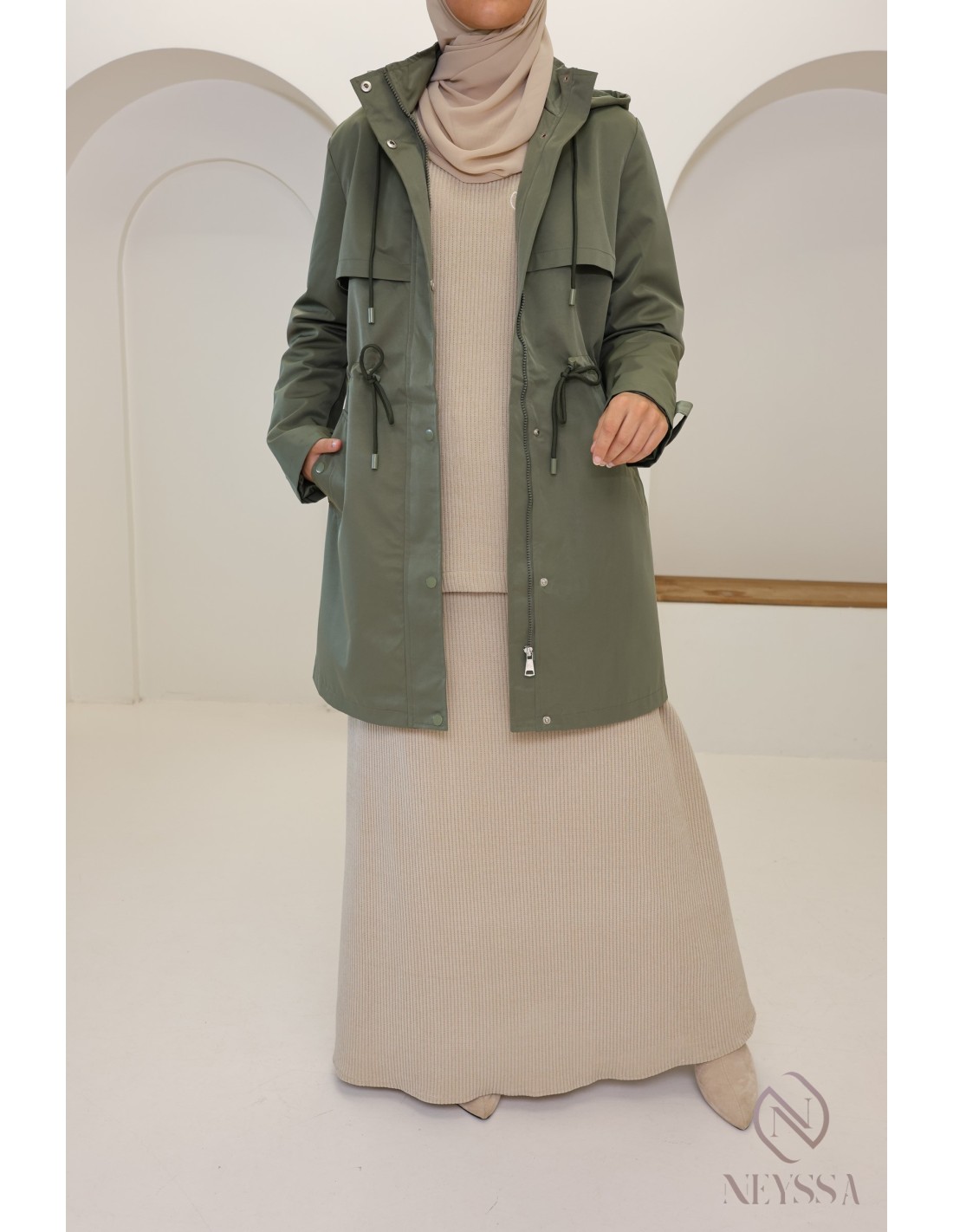 Veste Parka mi longue Kaki pour femme voilée tendance : must have