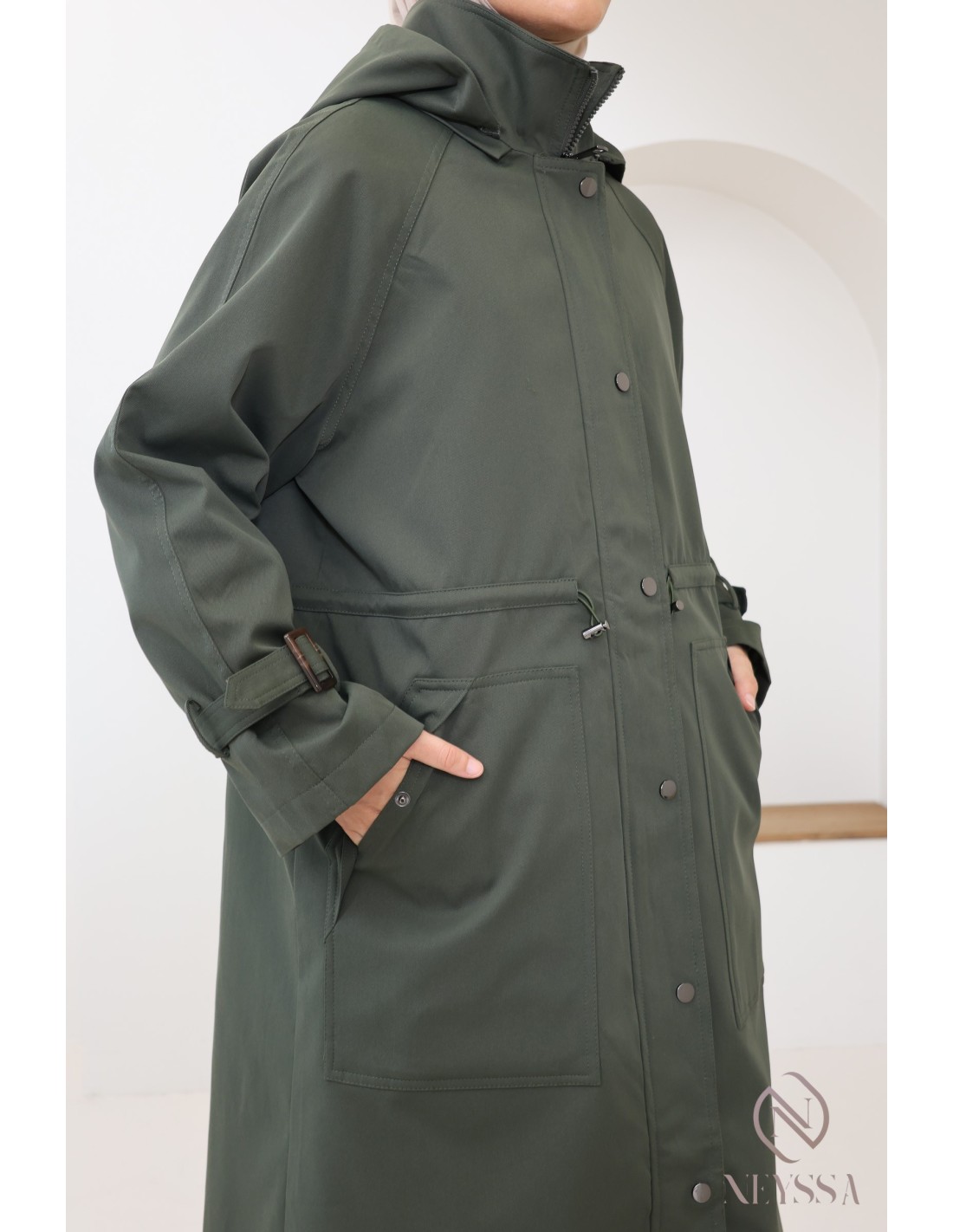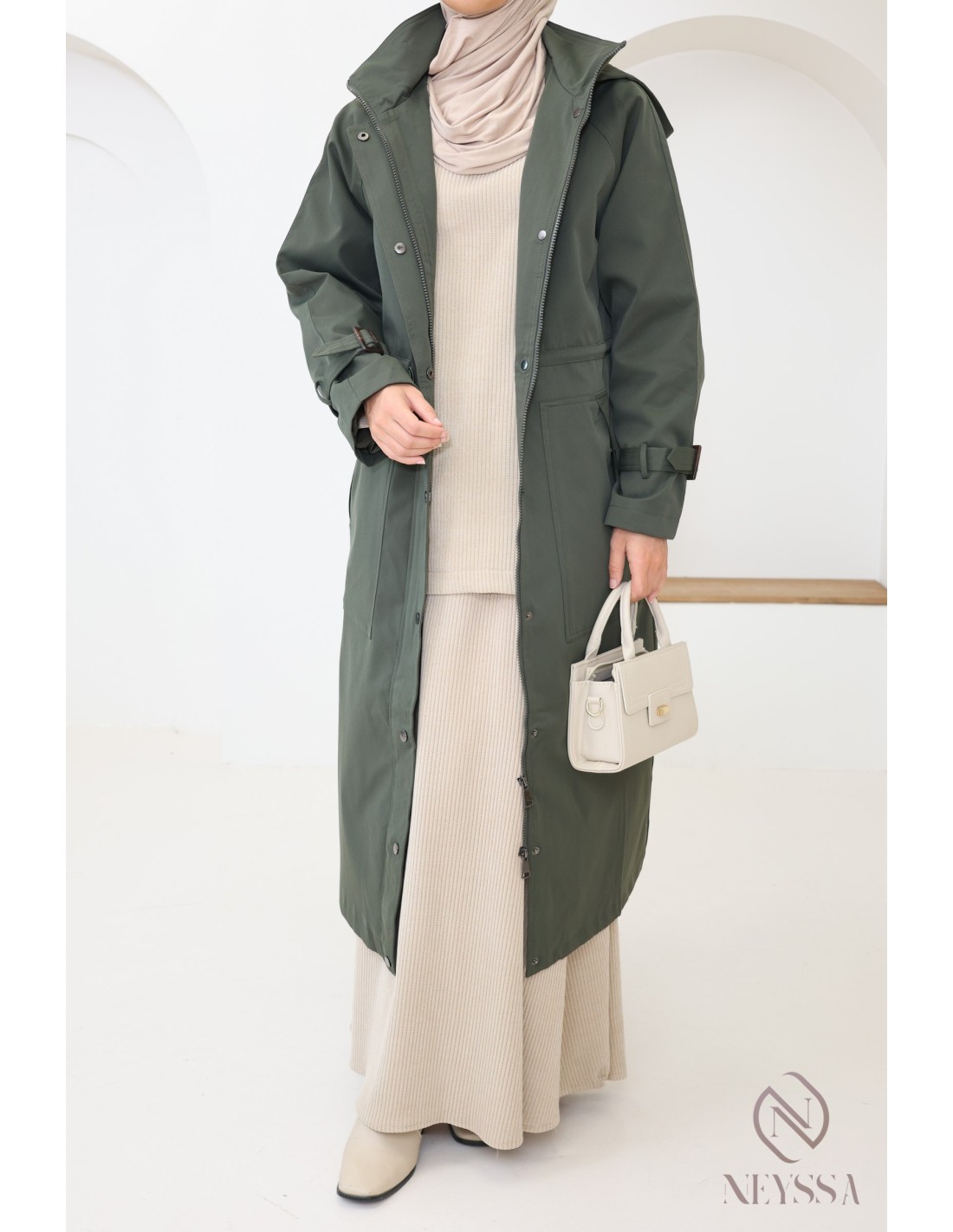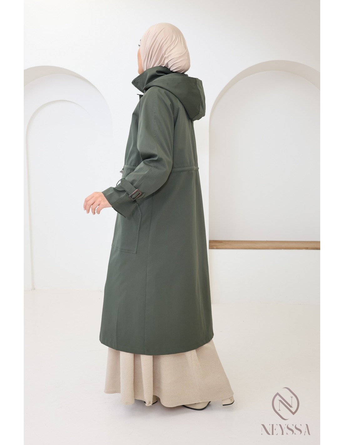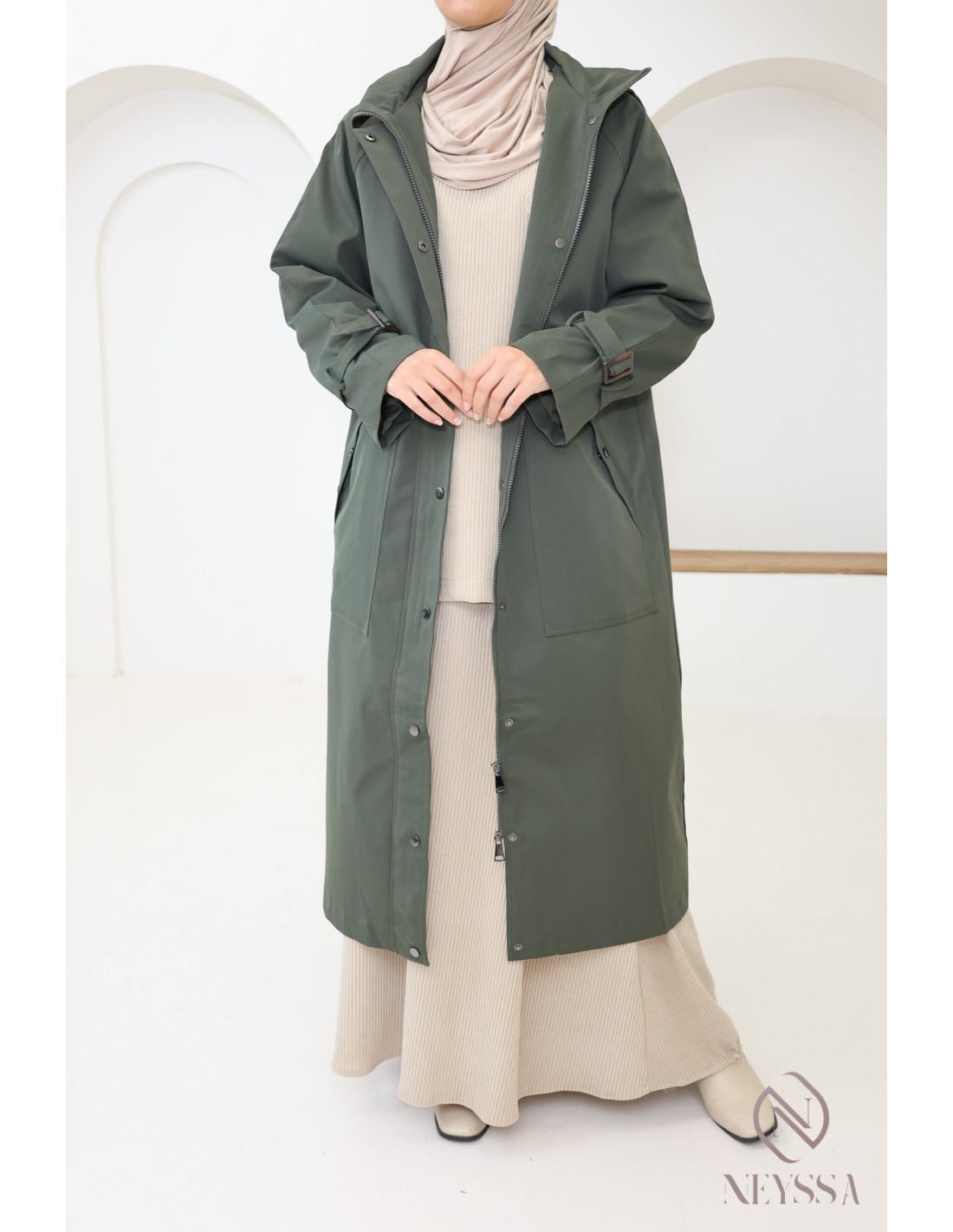 Longue parka kaki femme hijabi tendance