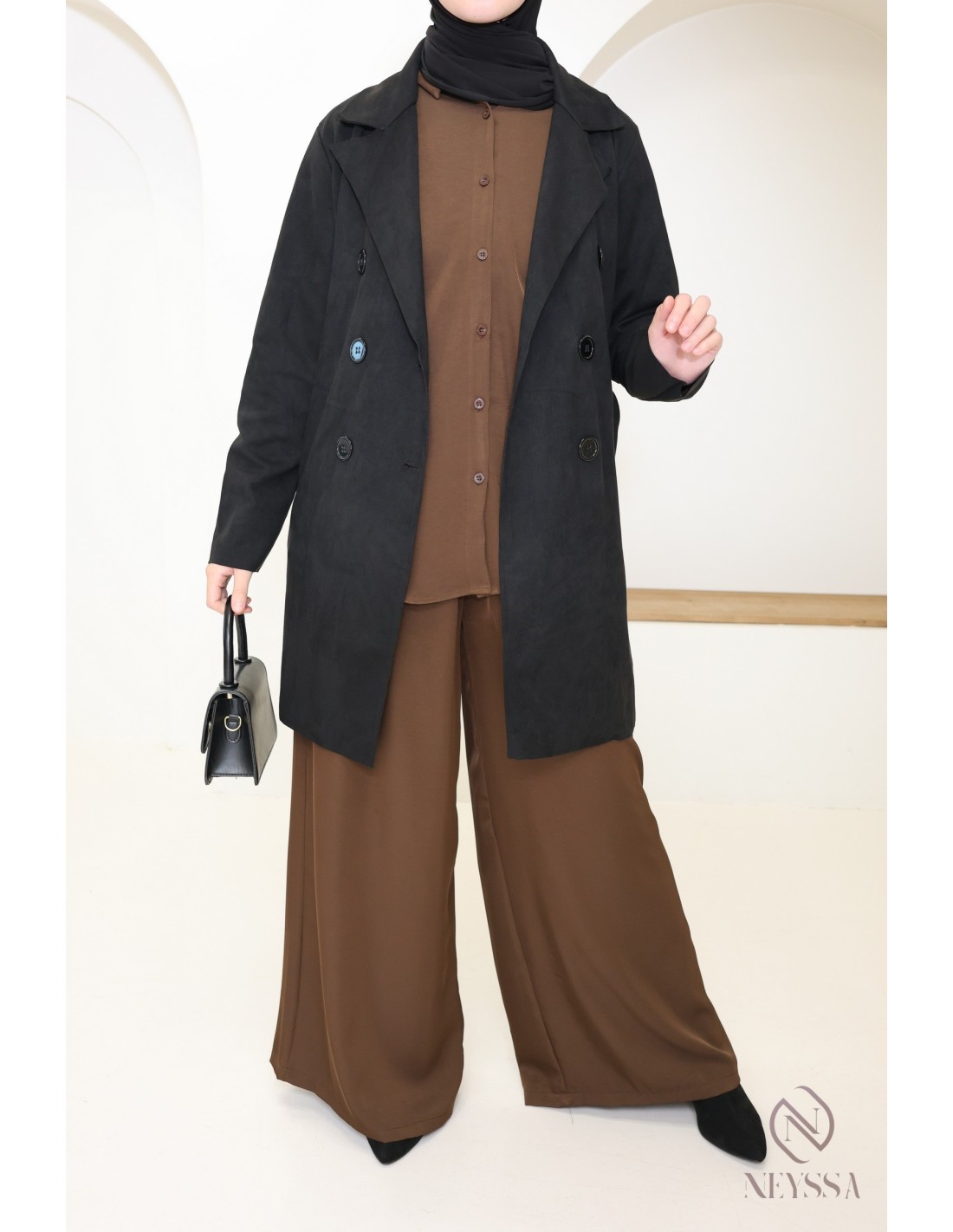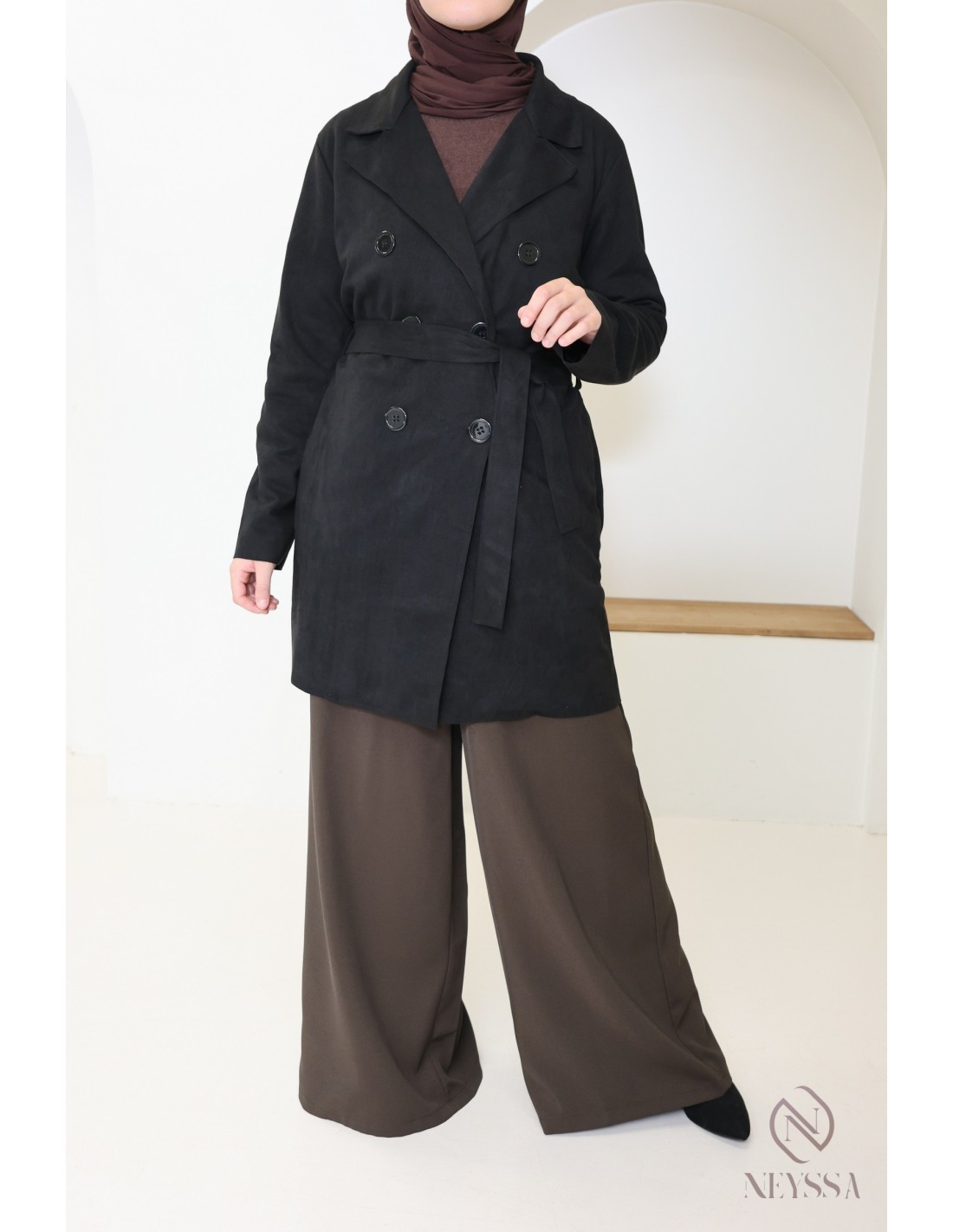 À la recherche d'un coupe froid pour cette saison que vous pourrez ajouter à votre collection de vêtements mastour ? Transformez votre garde-robe avec élégance grâce à notre Trench mi-Long en simili Daim, une pièce polyvalente qui allie style intemporel et confort.