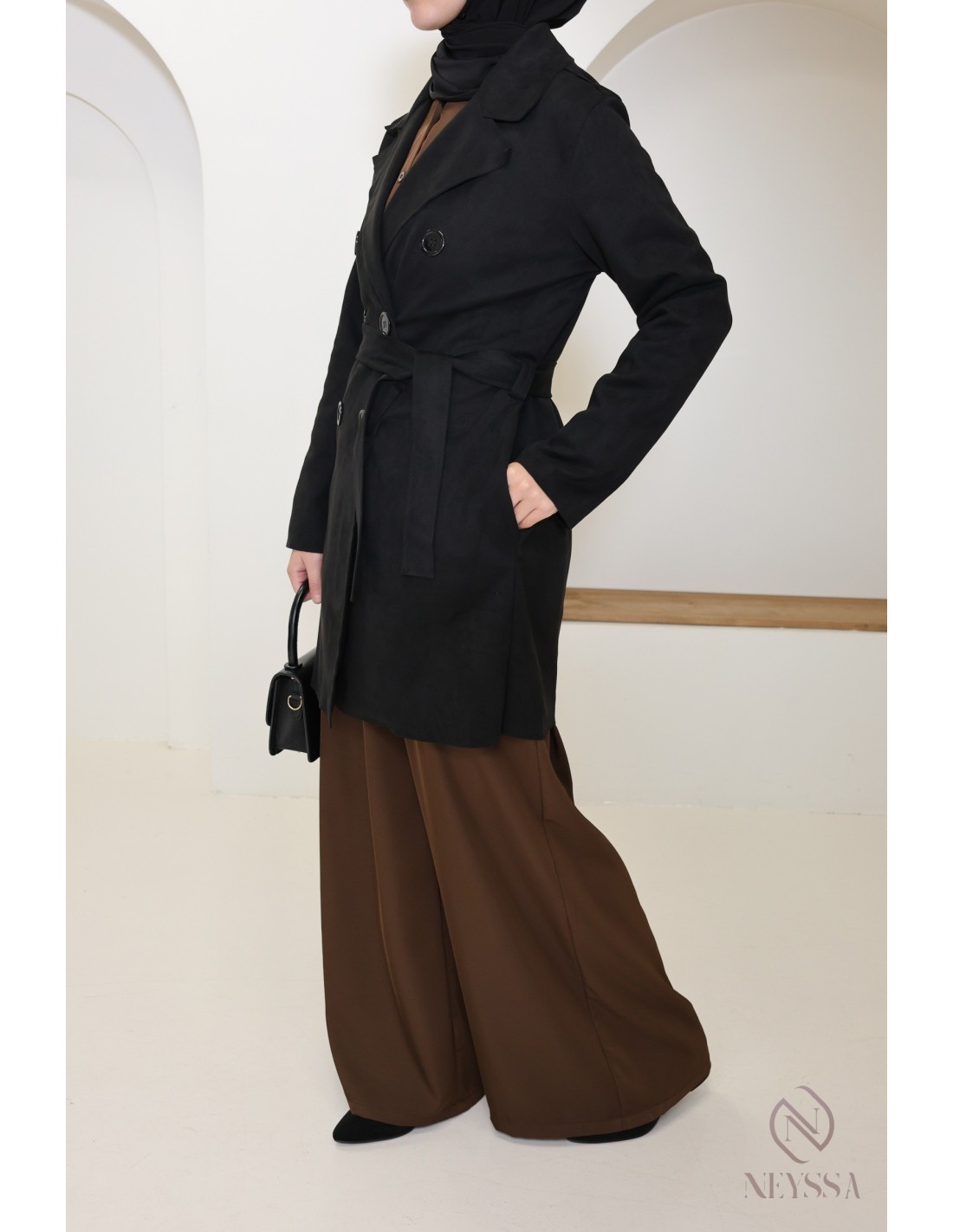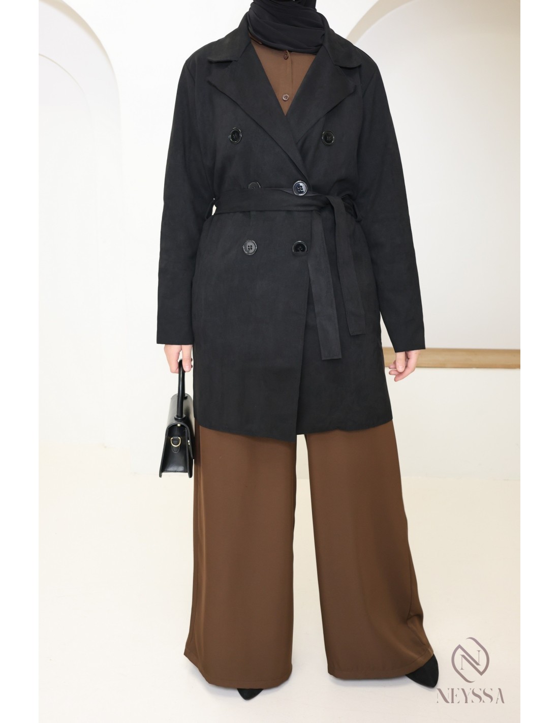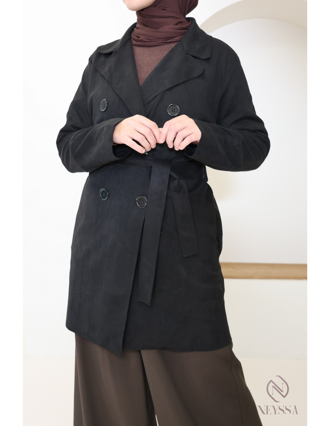 Trench mi-long daim KAYLA Noir