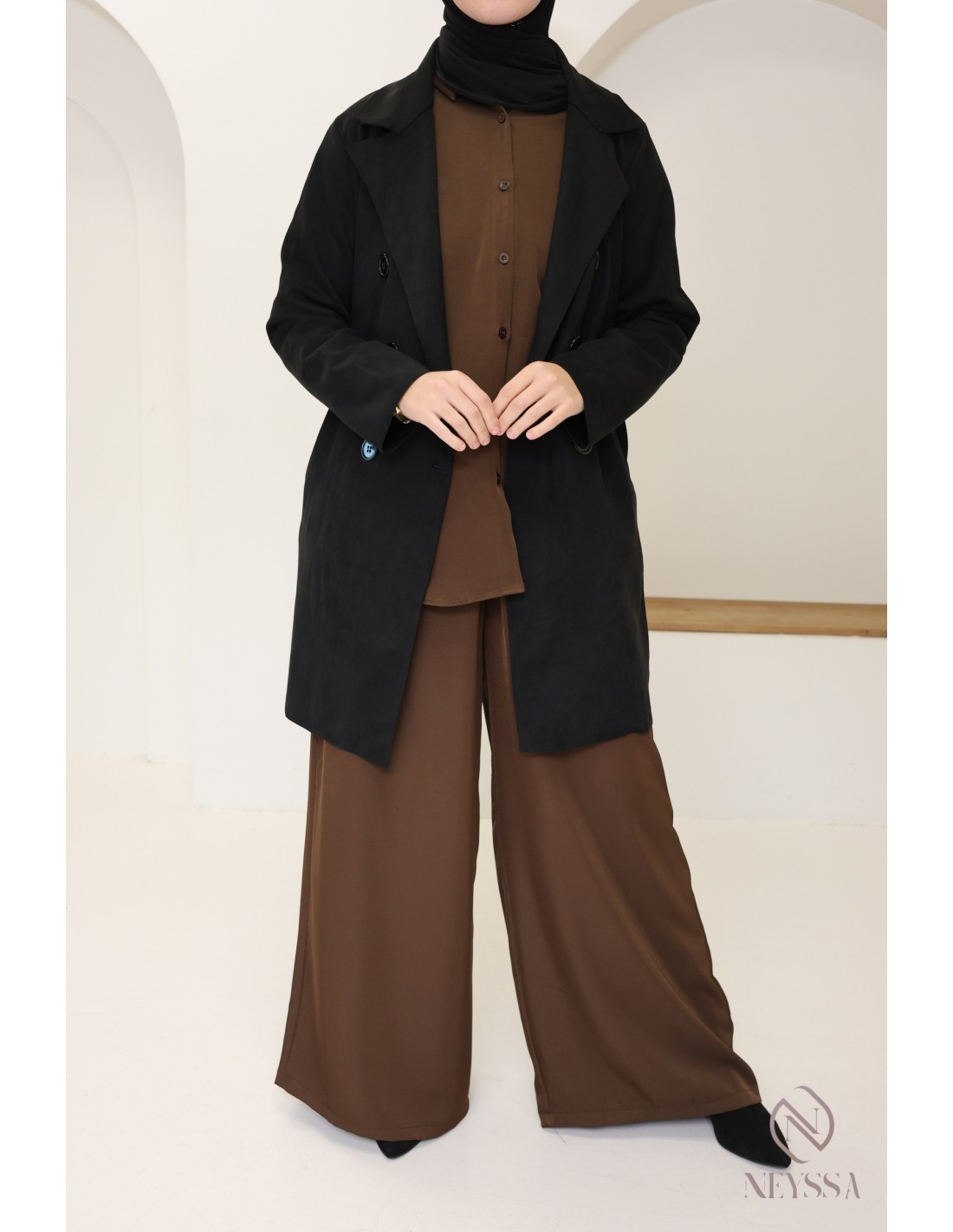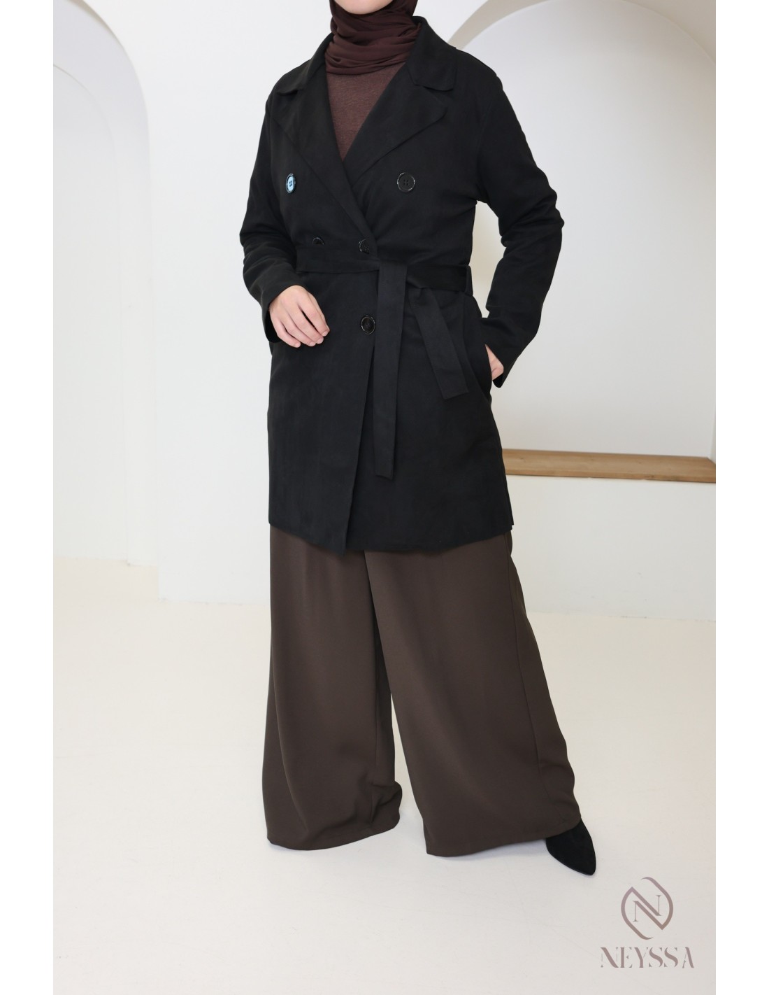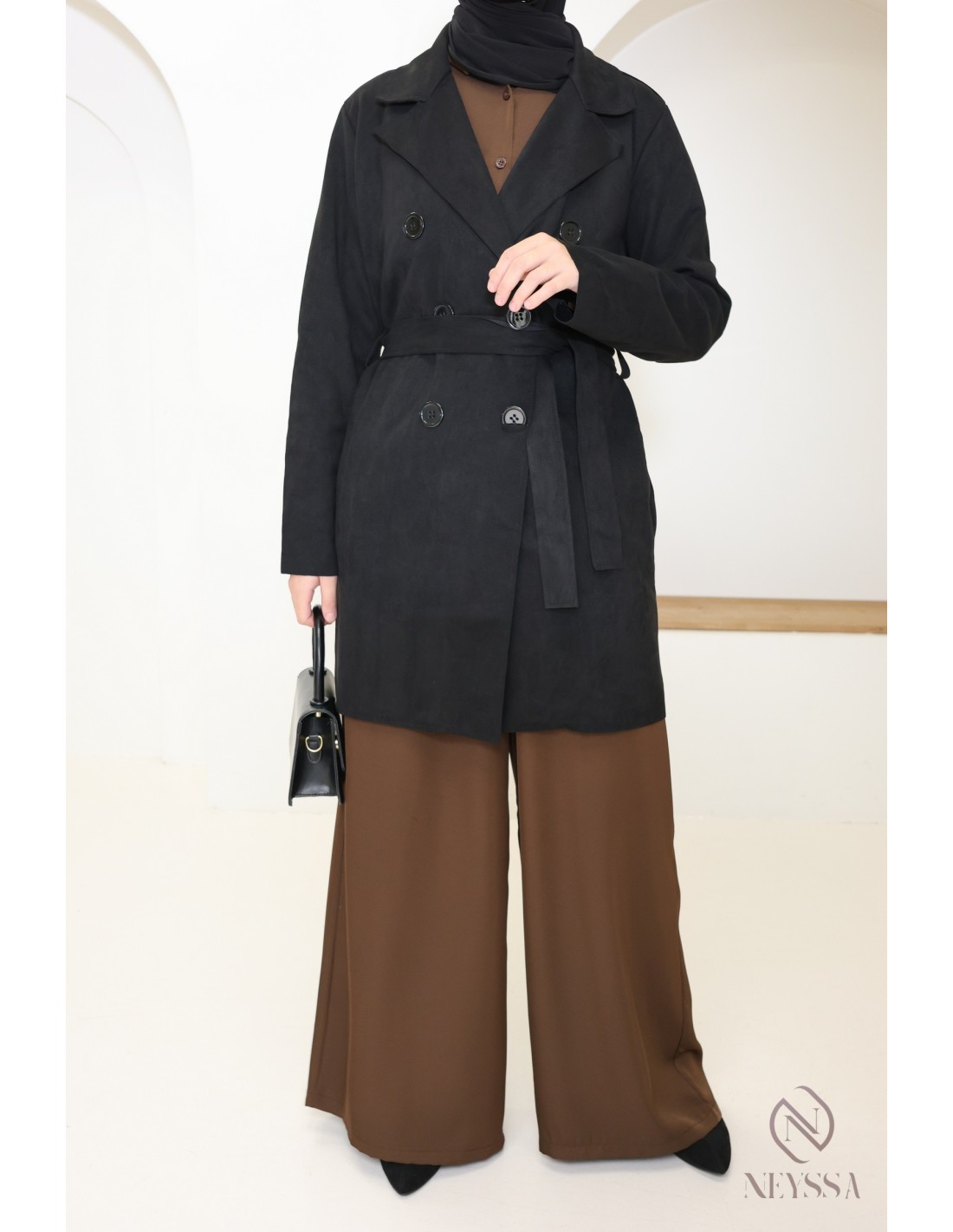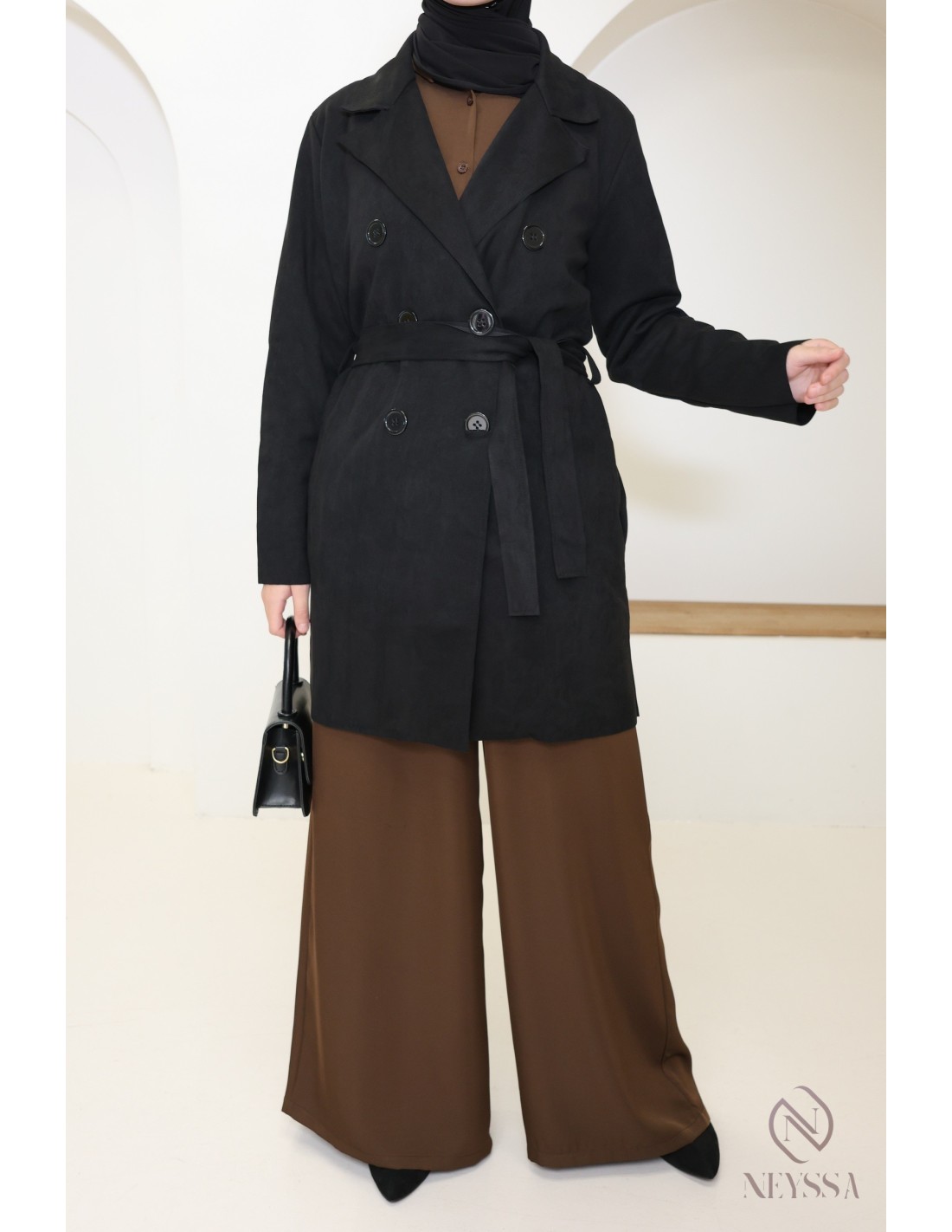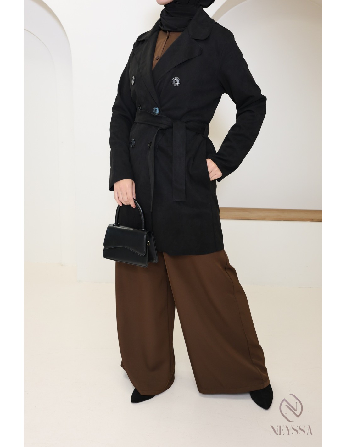 Trench mi-long daim noir : Parfait pour la mi-saison et tendance pour cette année !