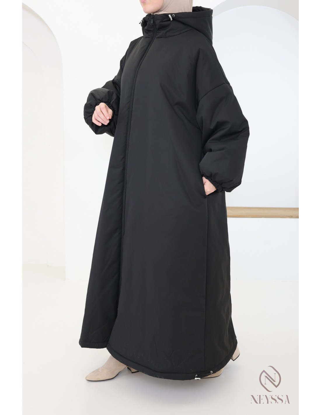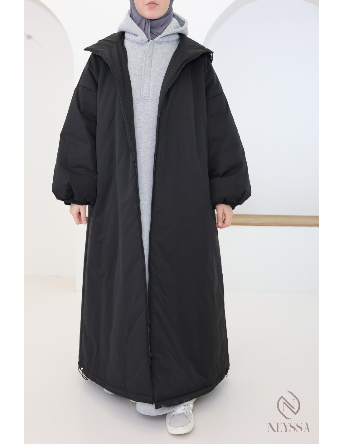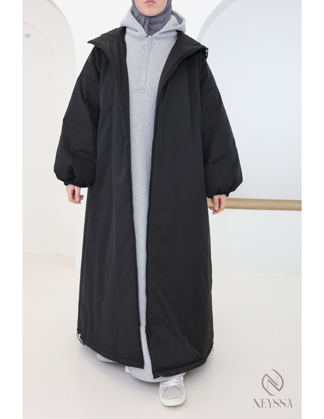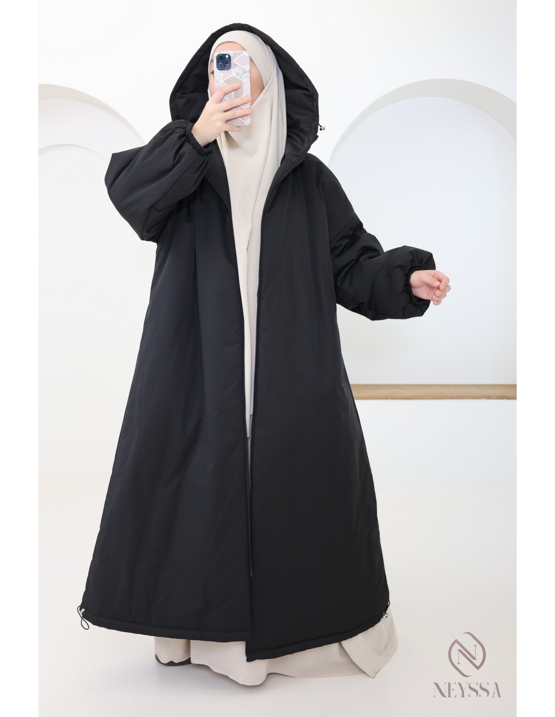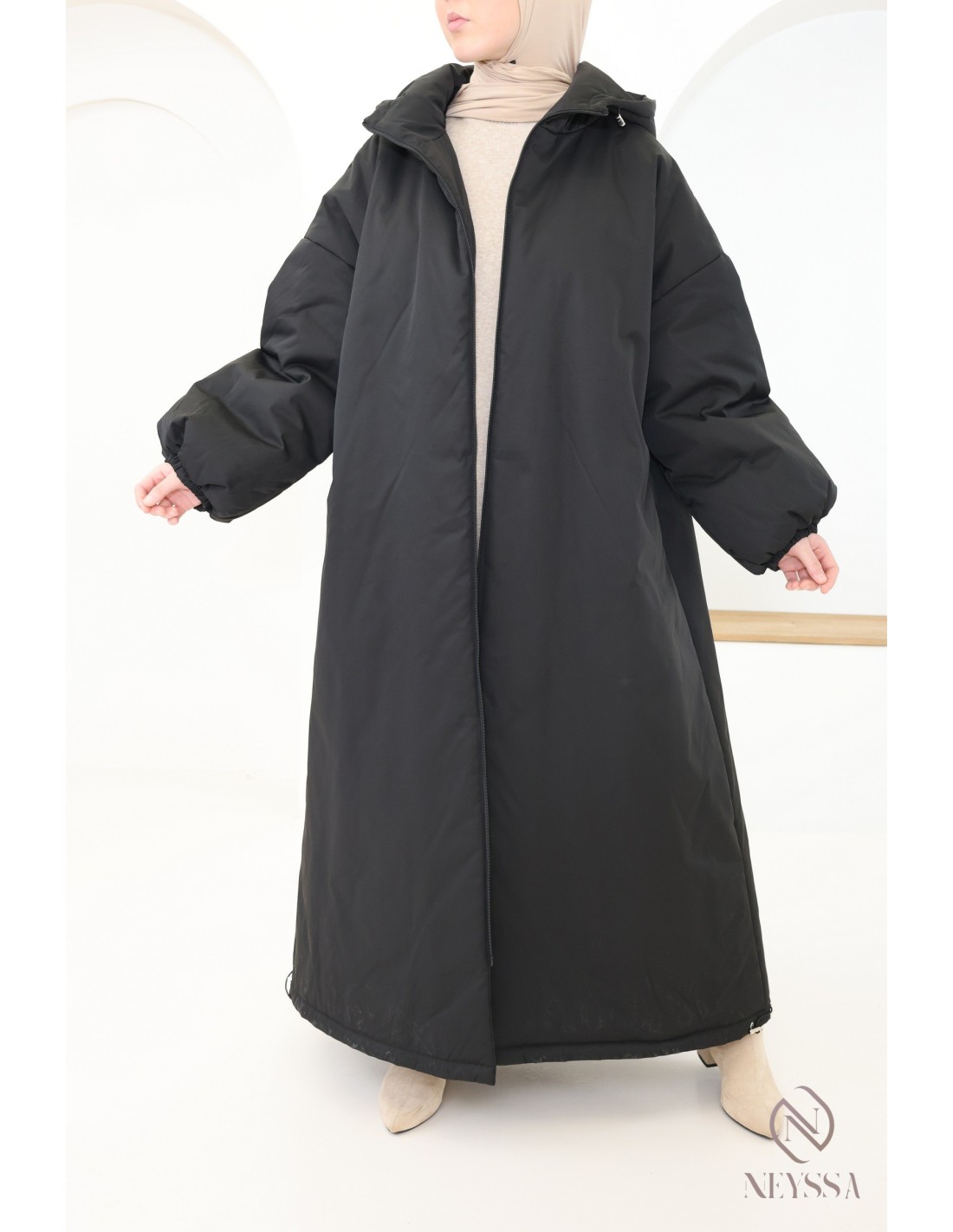 Cette parka longue hijabi est idéale pour affronter le froid sans compromis sur l’élégance et la pudeur. Sa coupe oversize et ses finitions soignées en font une pièce incontournable de la saison automne-hiver.