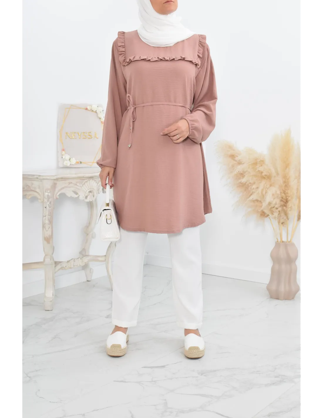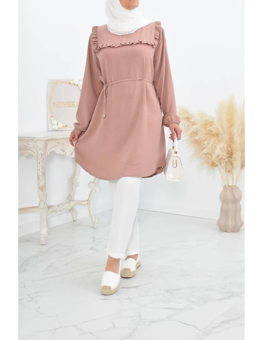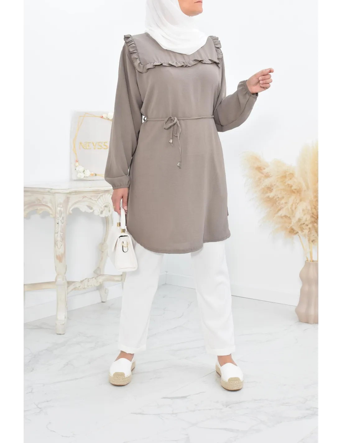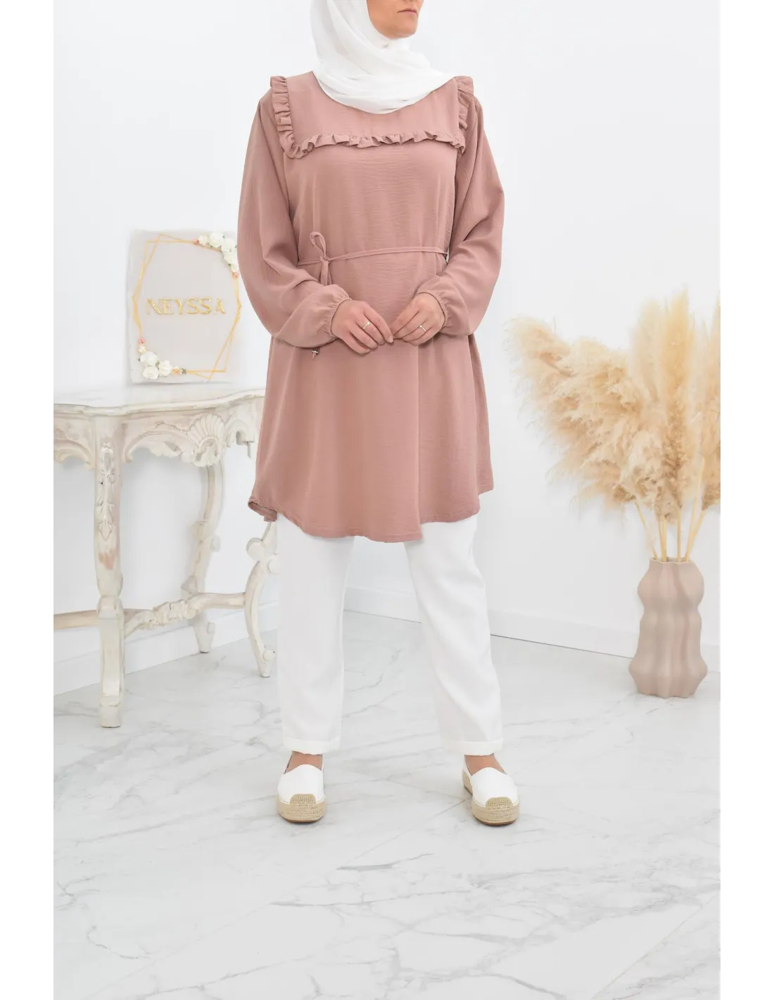 Tunique longue à froufrou parfait pour la femme voilée !