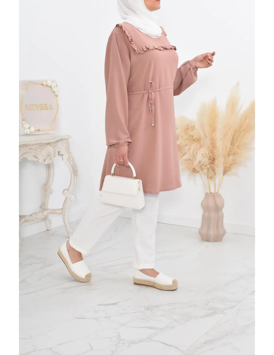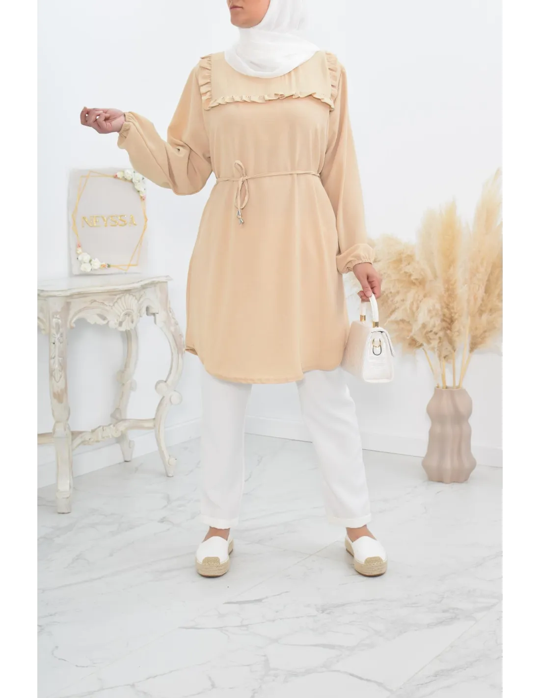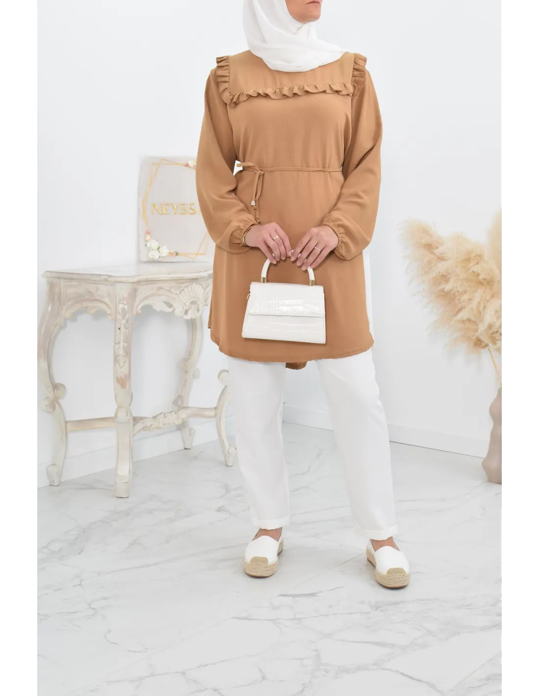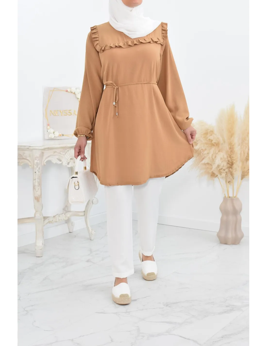 Tunique longue à froufrou parfait pour la femme voilée !