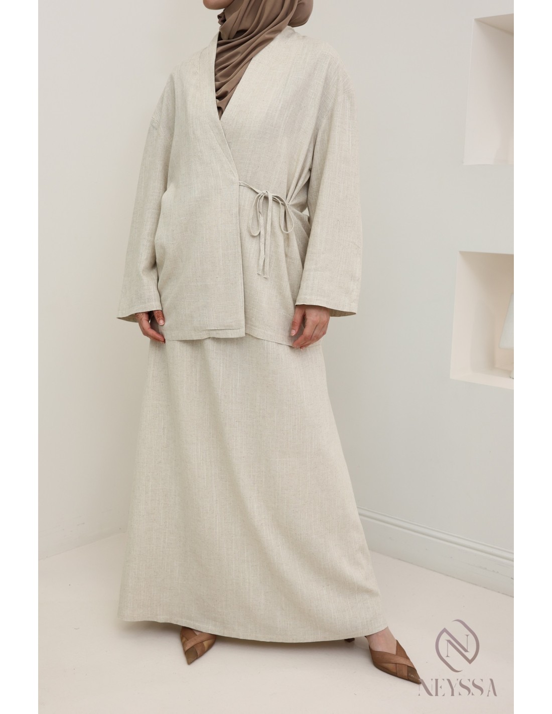Votre dressing est rempli de jupes et de palazzo d'été mais il vous manque de jolis hauts modestes pour compléter vos outfits? Chez Neyssa, nous vous proposons du prêt à porter modeste tendance dans lequel vous n'y trouverez que des pépites, dont ce magnifique haut effet lin.