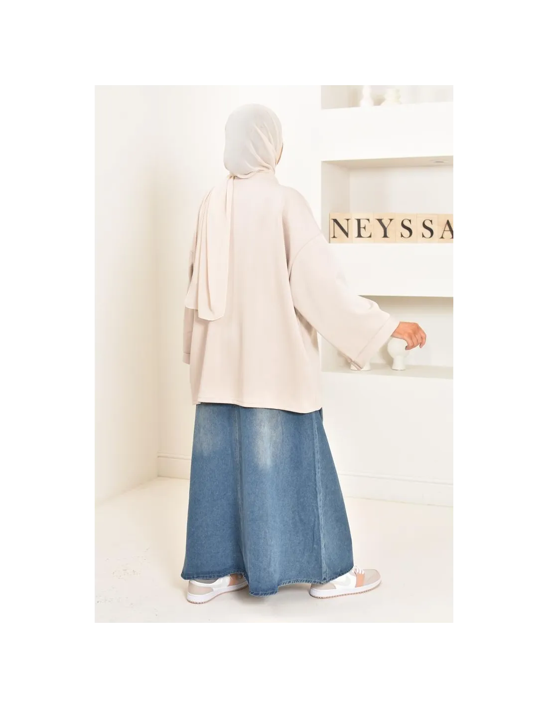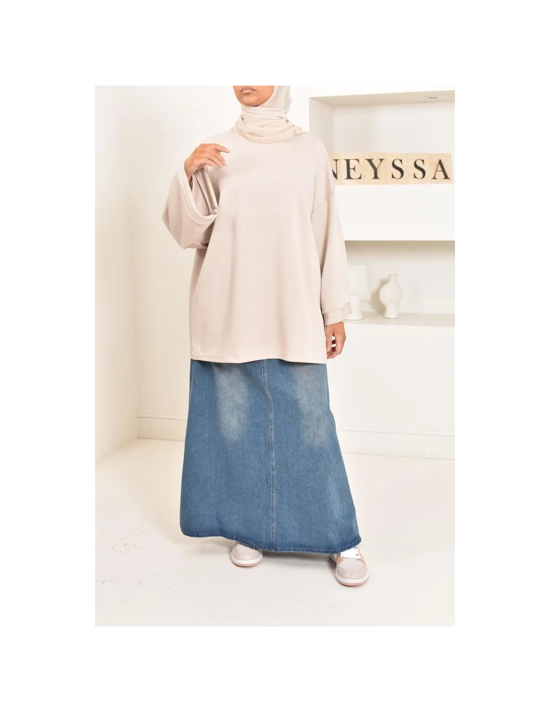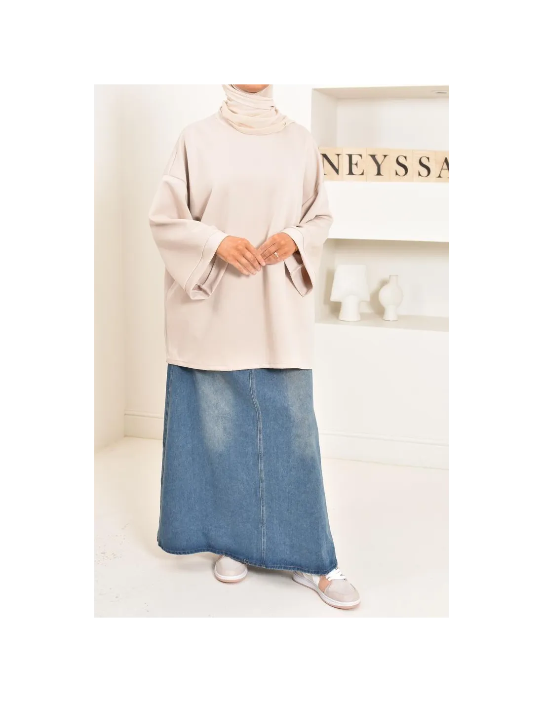 Ce pull mi-long style sweat à col rond est le choix parfait pour les hijabis qui souhaitent allier mode, confort et modestie au quotidien.