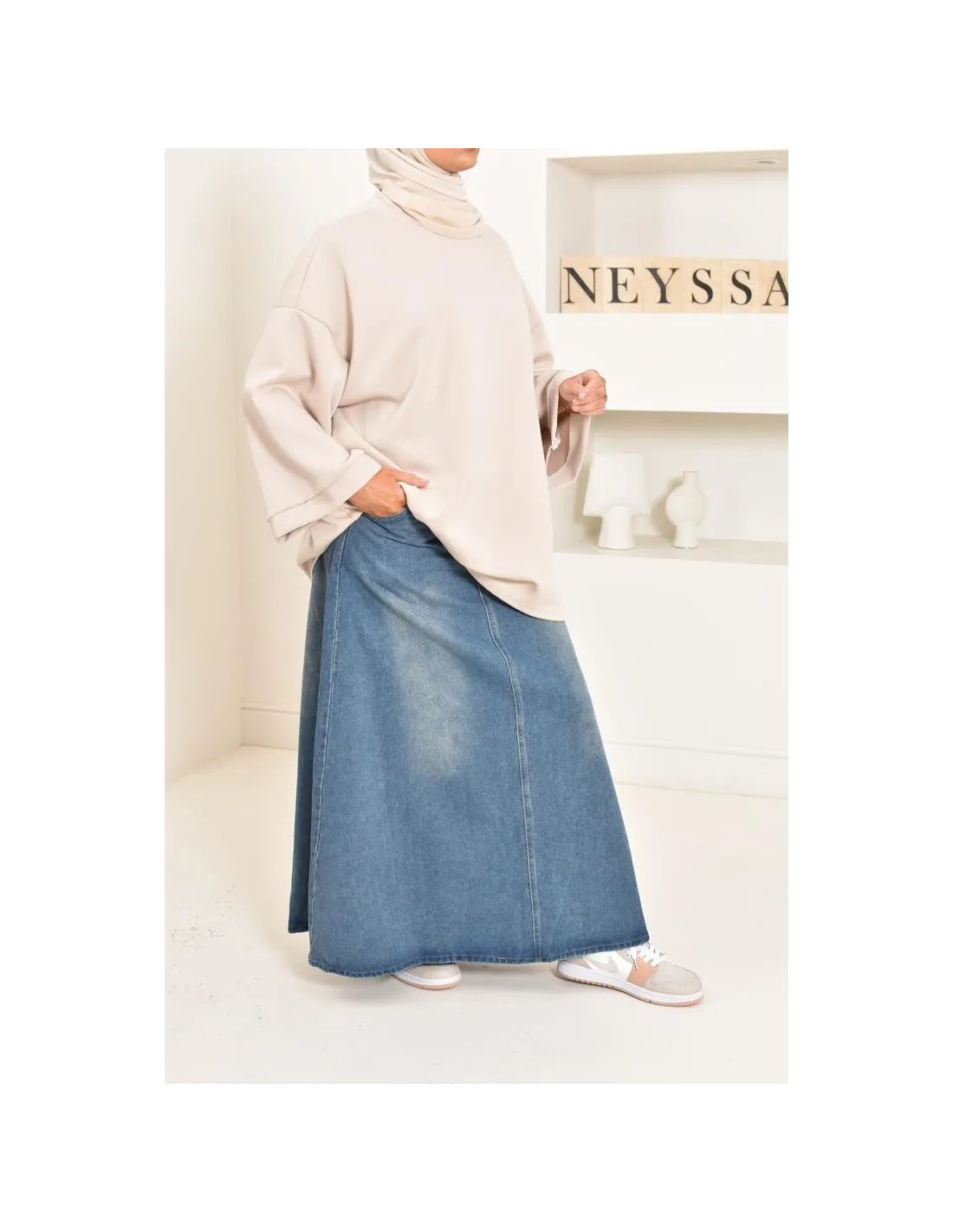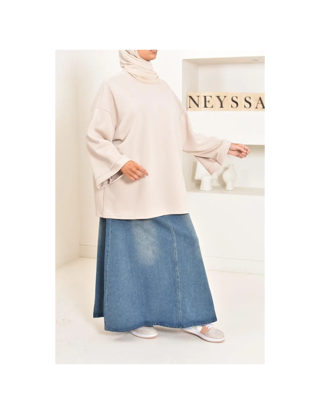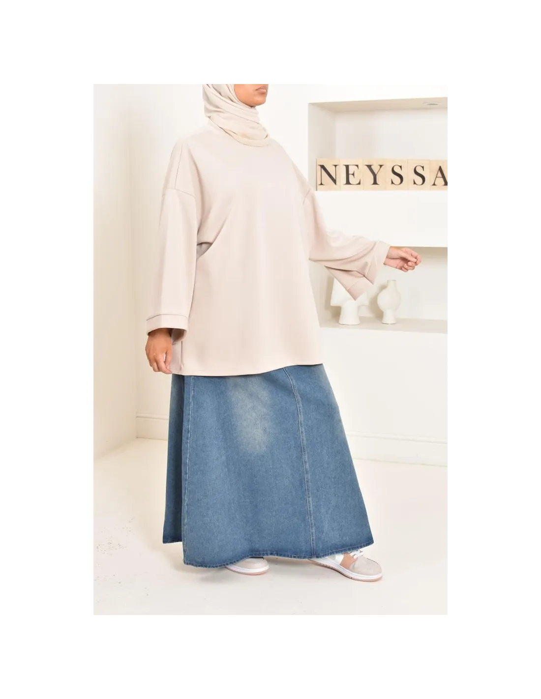 Ce pull mi-long style sweat à col rond est le choix parfait pour les hijabis qui souhaitent allier mode, confort et modestie au quotidien.