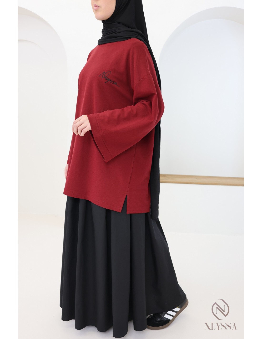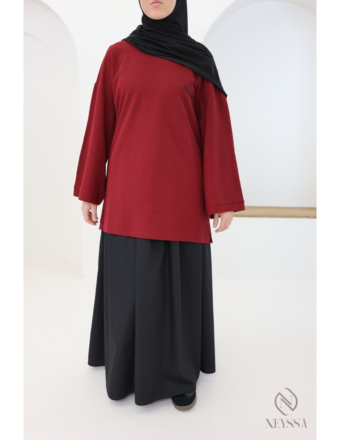 Ce t-shirt oversize Neyssa sera idéale pour les hijabi à la recherche d'une tenue sportswear à la fois confortable et stylé :