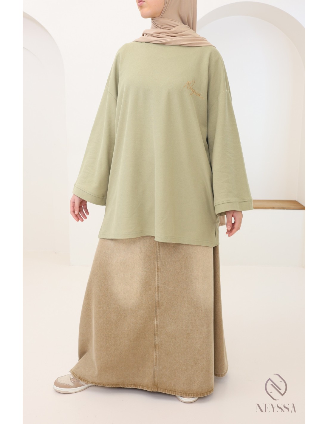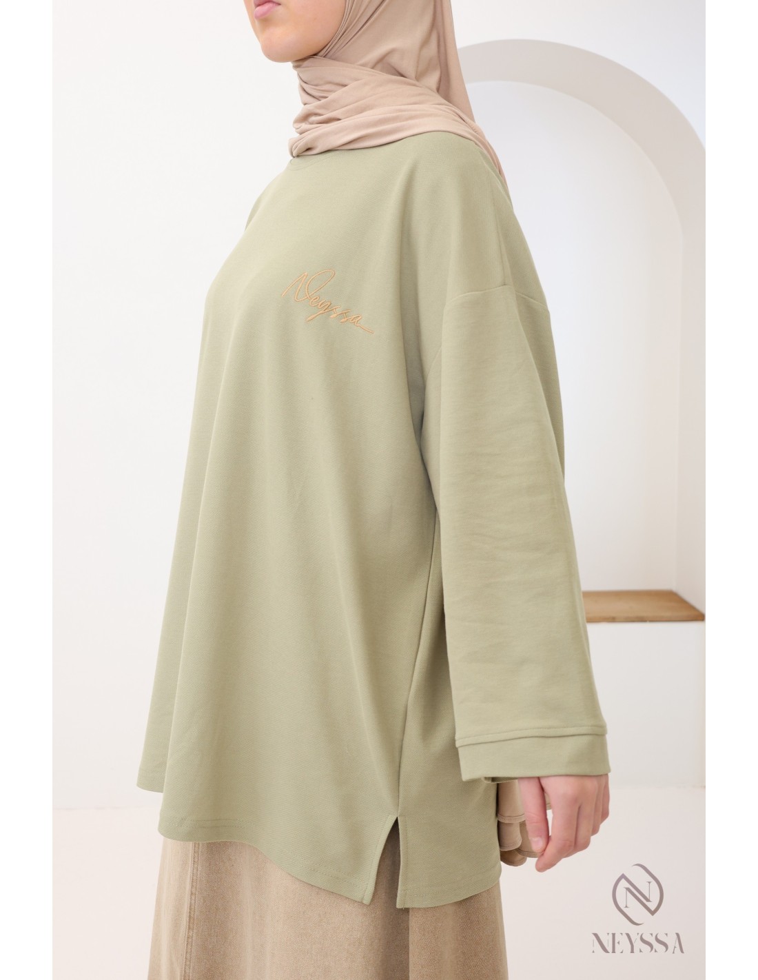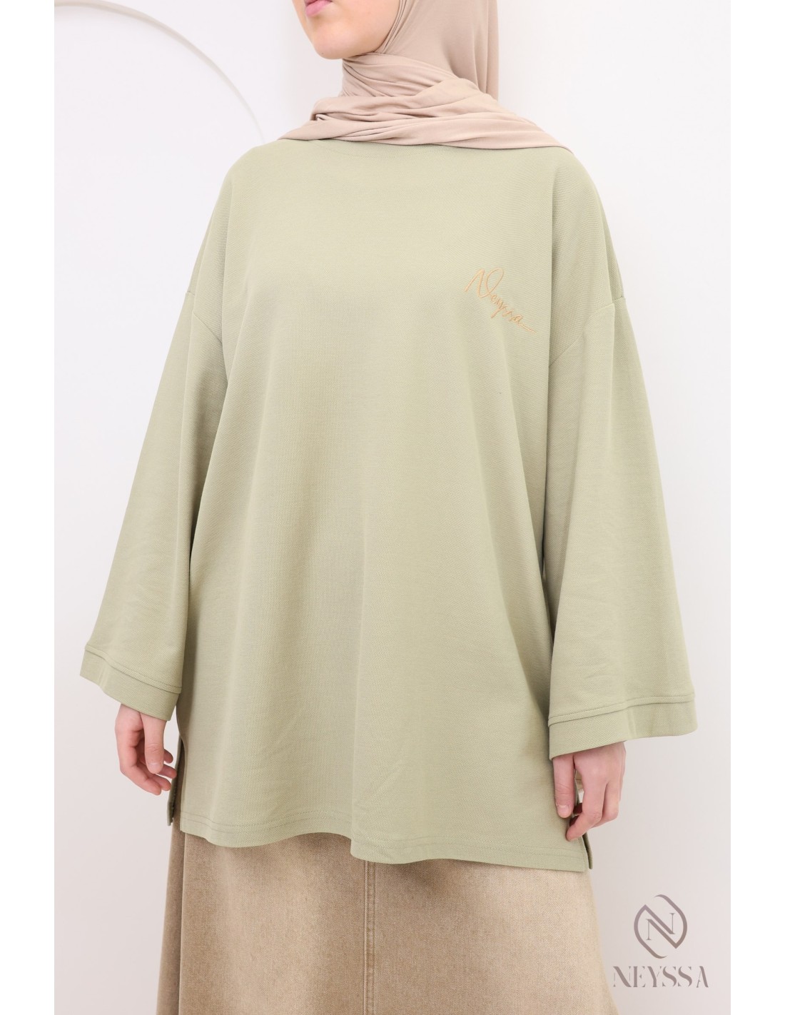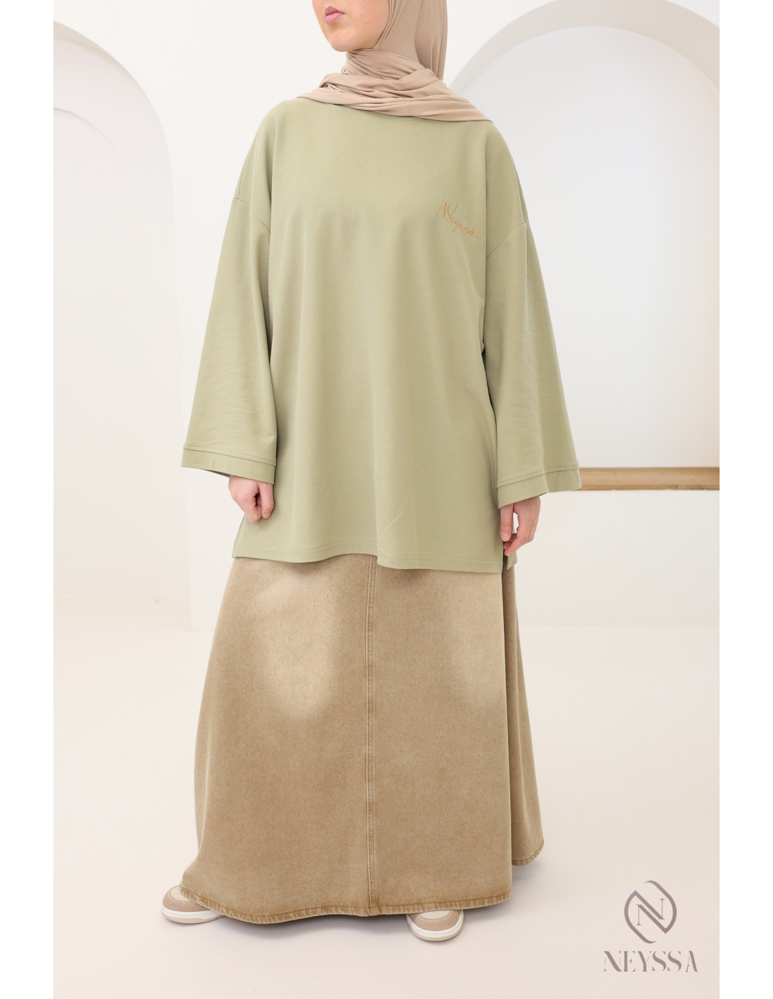 T-Shirt maille piquée kaki coupe oversize : modest fashion