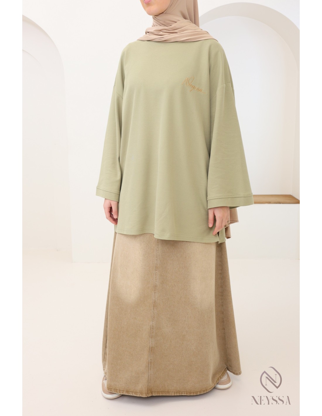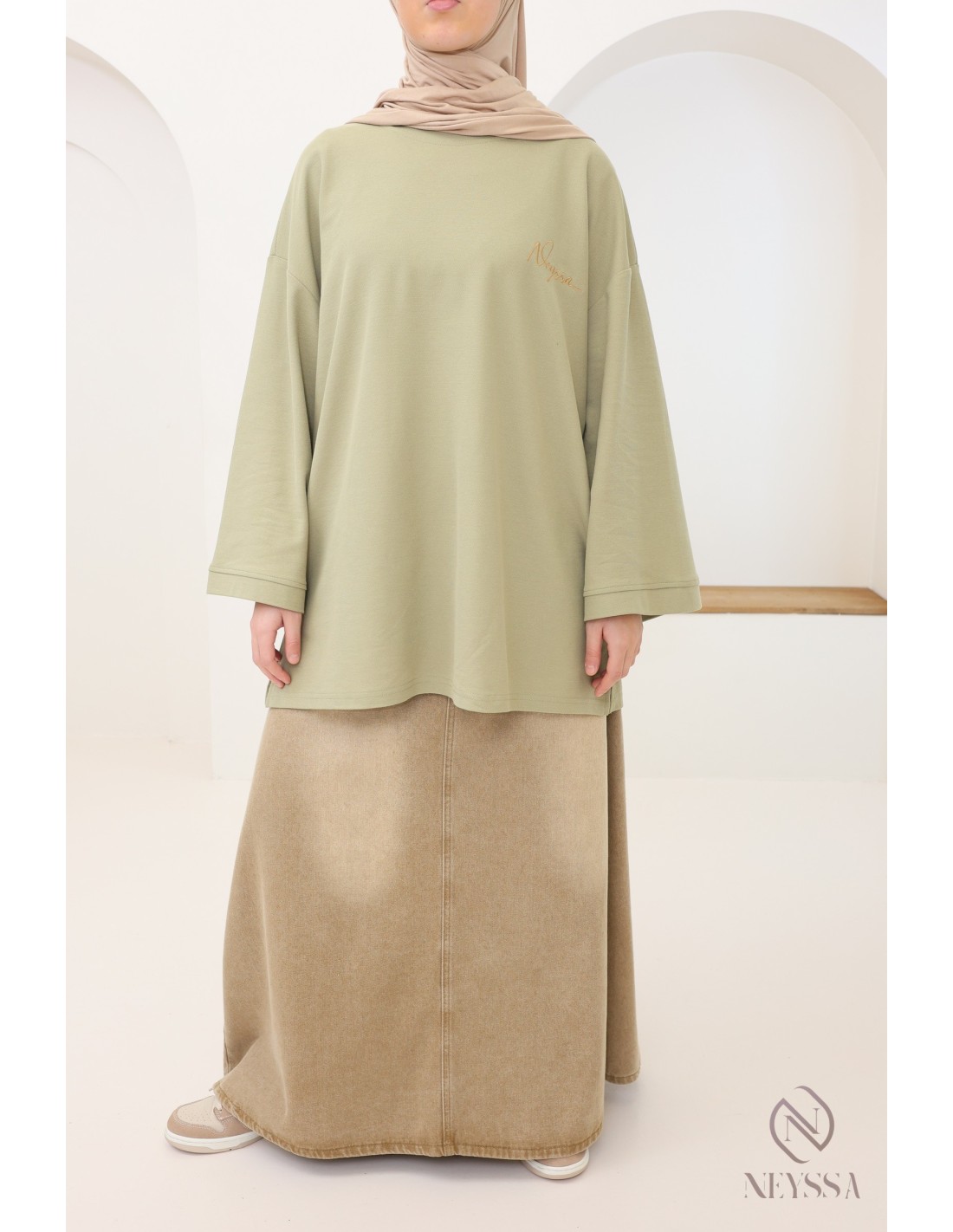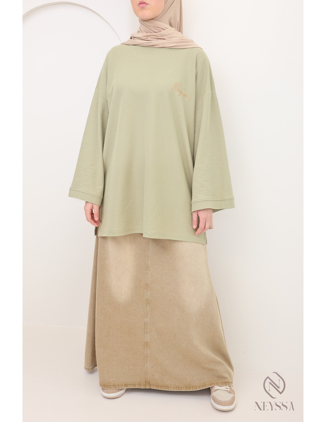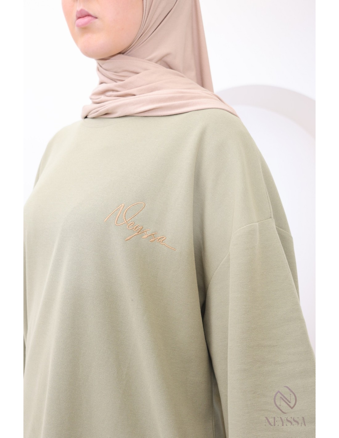 T-Shirt maille piquée kaki coupe oversize : modest fashion